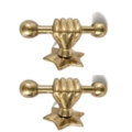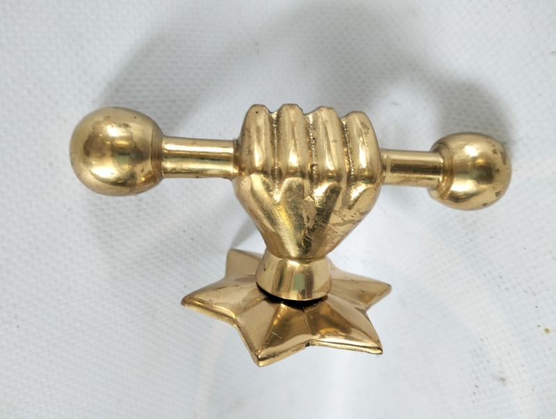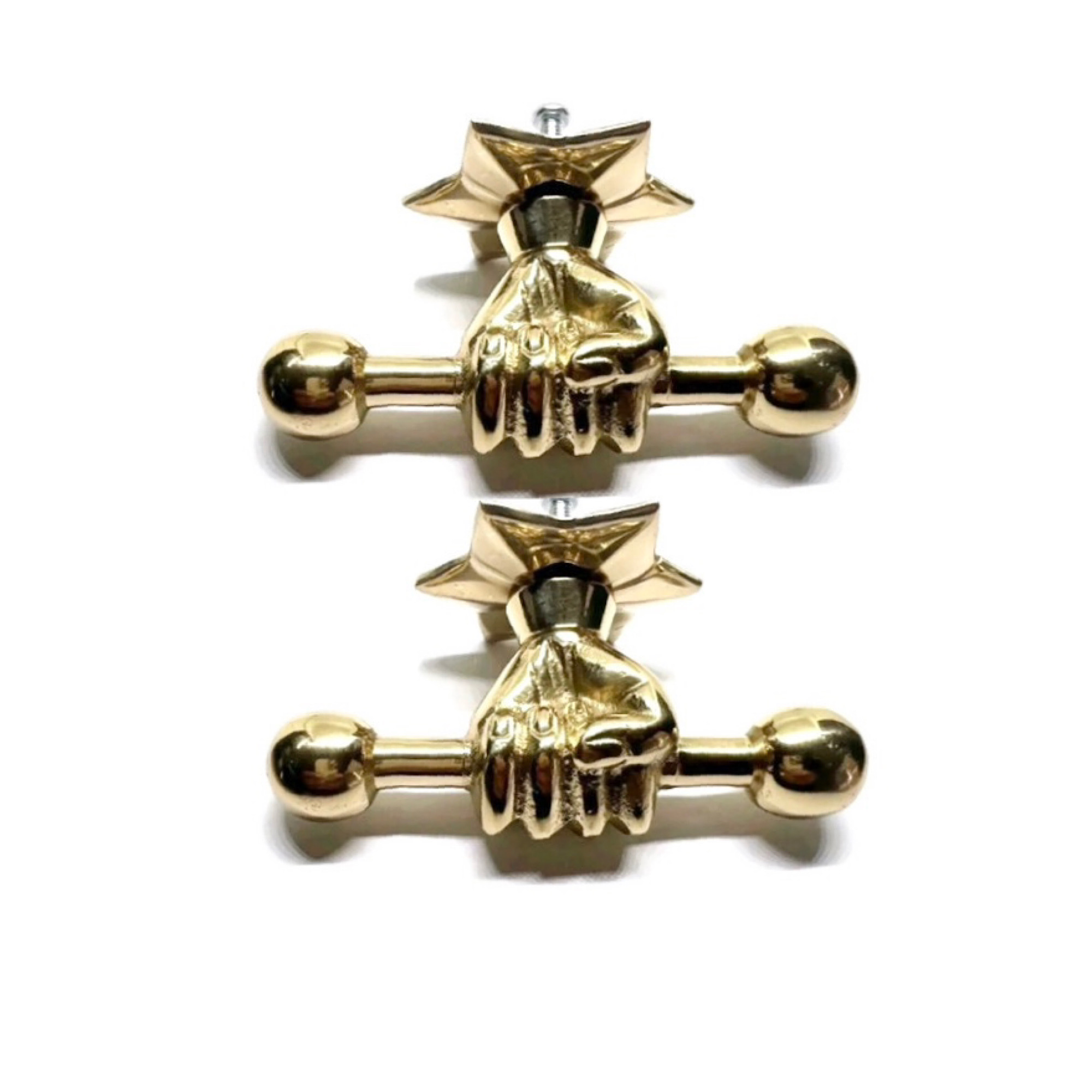 2 LARGE Star fist KNOB 4” inch bolt version hand pull solid brass hook Hand 10 cm handle pull