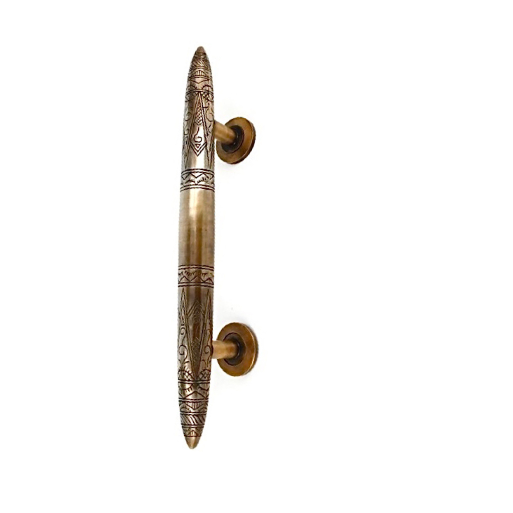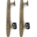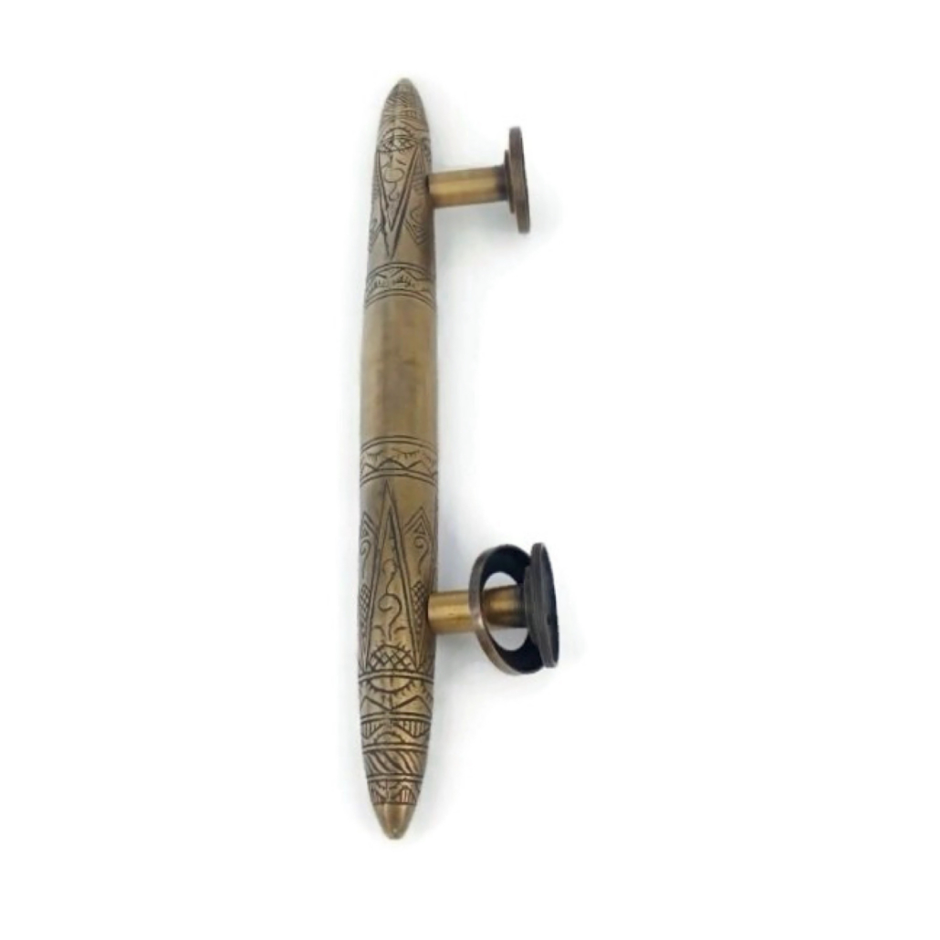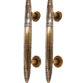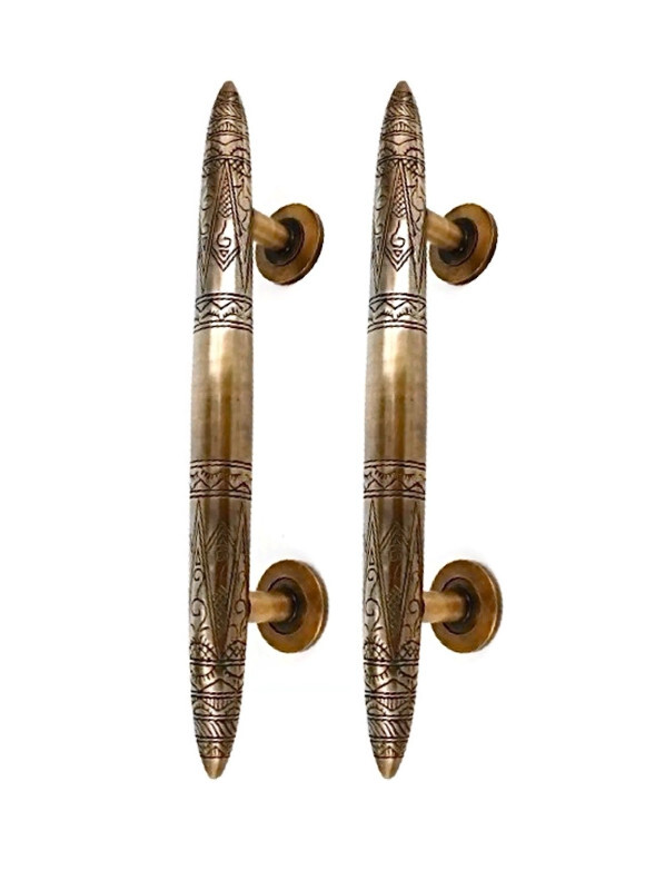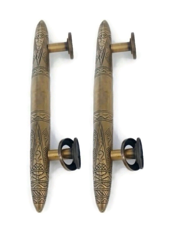 2 pieces large 14″ version Asian inspired vintage style door handle pulls heavy solid brass. Engraved pattern