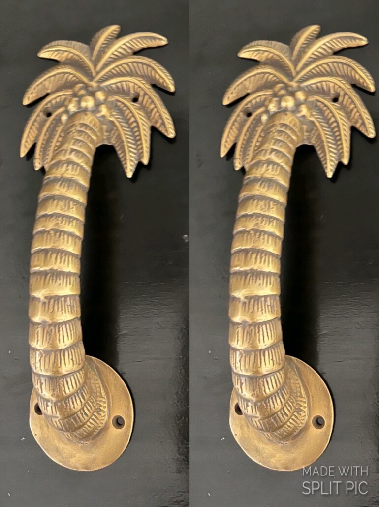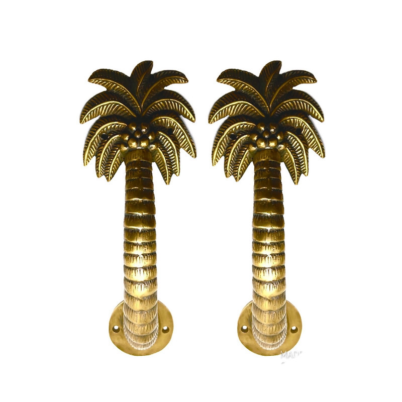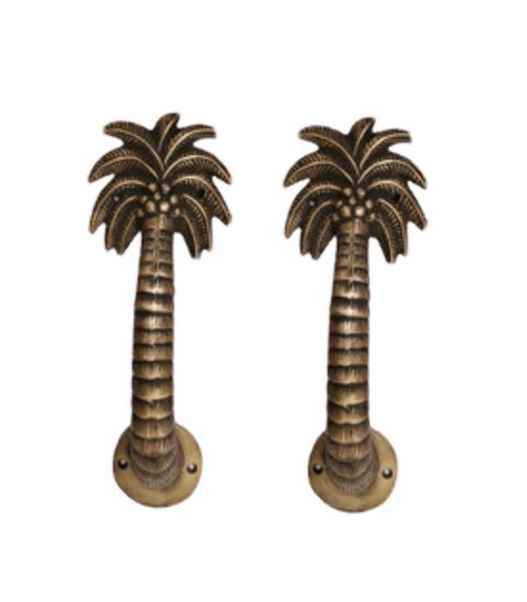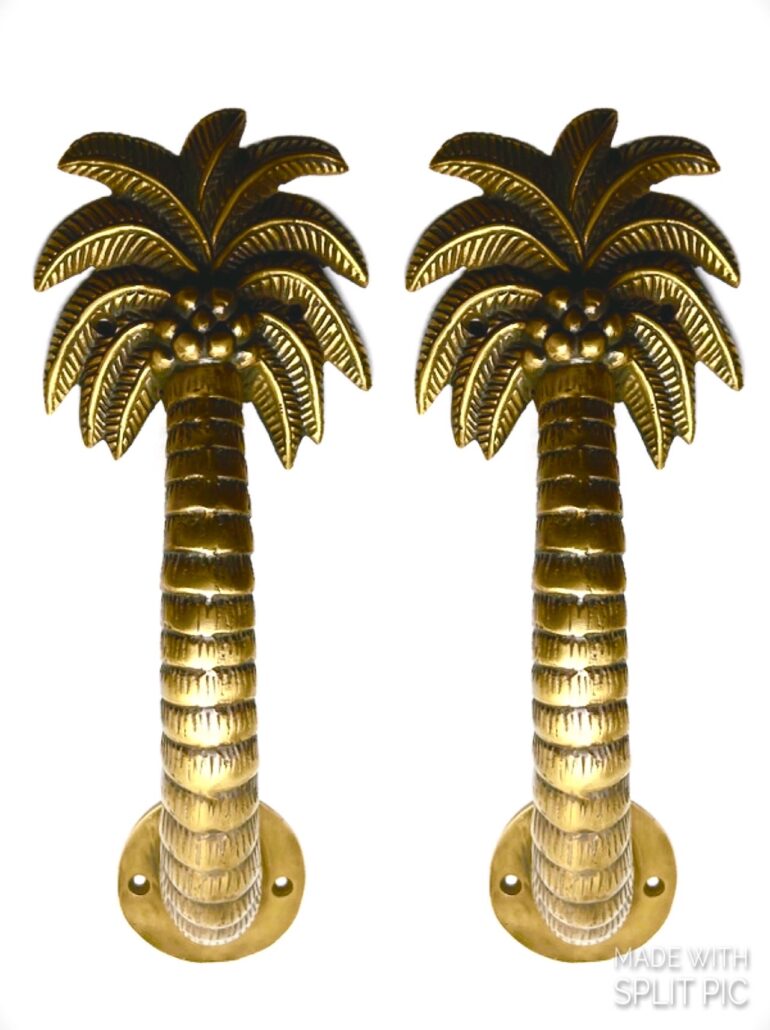 2 heavy cast 11″ Polished Medium version Palm tree Door pull handle solid aged brass 28cm