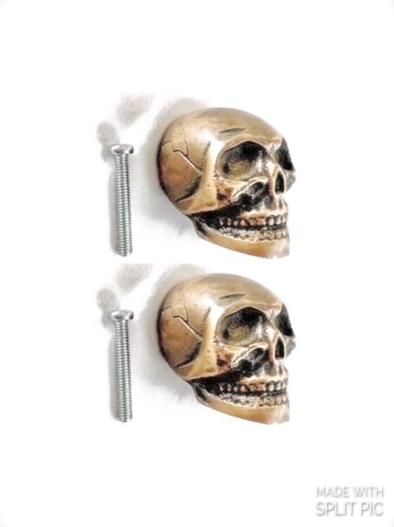 2 medium version SOLID BRASS skull knob Finger pulls.