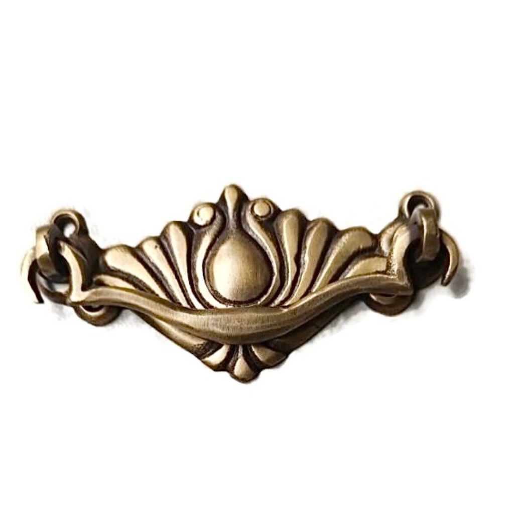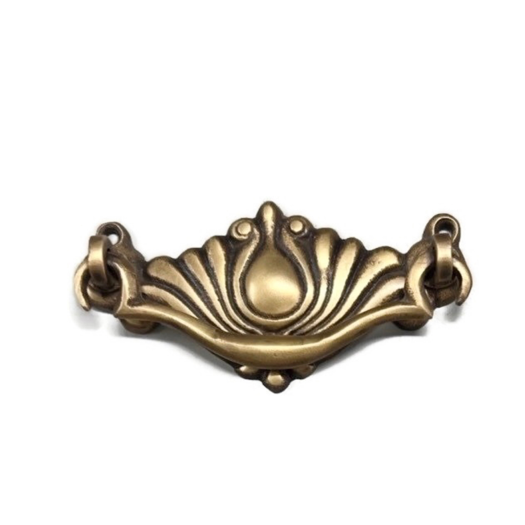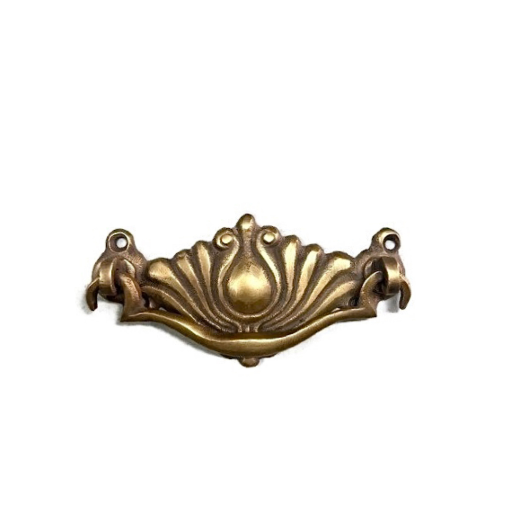 4.1/2″inches wide 2 Solid Brass handles Old vintage aged style screws included Size Approx 110 mm x 59 mm