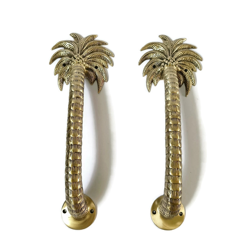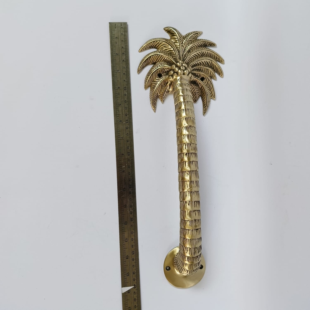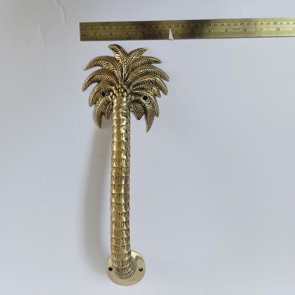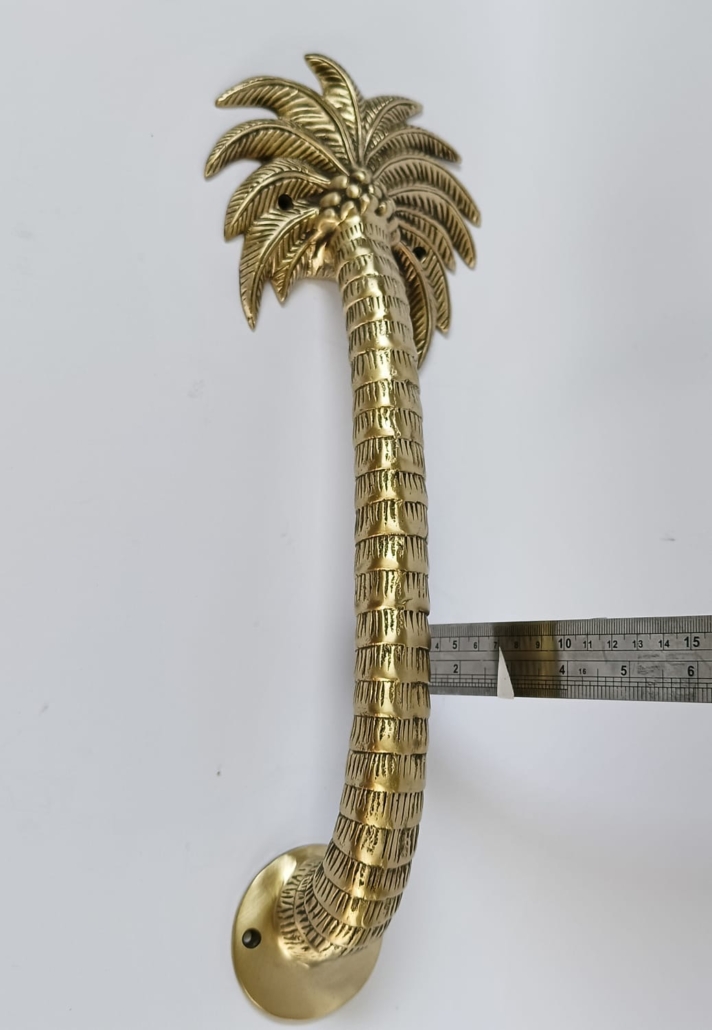 2 pieces quality Heavy weight 16″ inch long cast large version brass PALM Tree Leaves trunk door pull handle rustic Door grab curved hand cast 40 cm