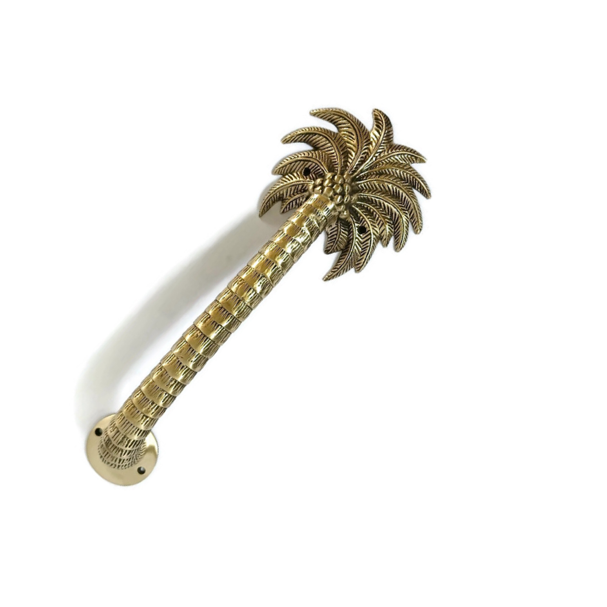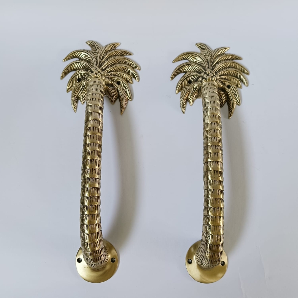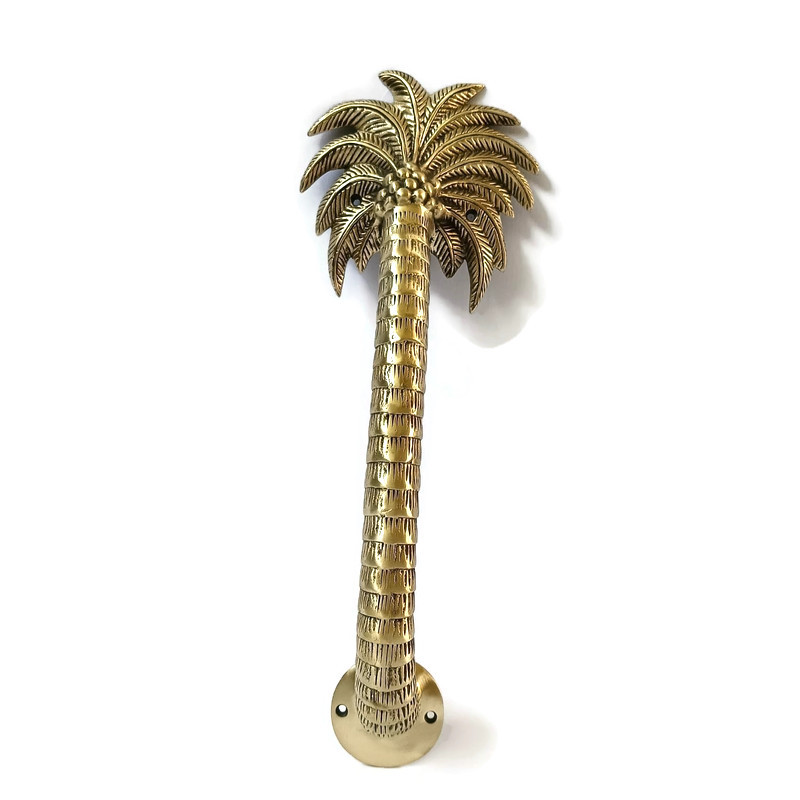 2 pieces quality Heavy weight 16″ inch long cast large version brass PALM Tree Leaves trunk door pull handle rustic Door grab curved hand cast 40 cm
