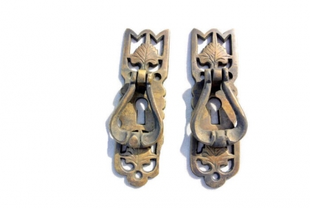 2 antique style brass aged DOOR DRAWER HANDLES pulls pedestals