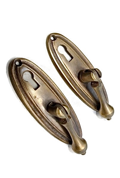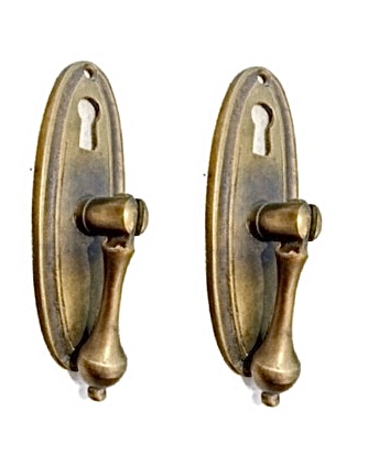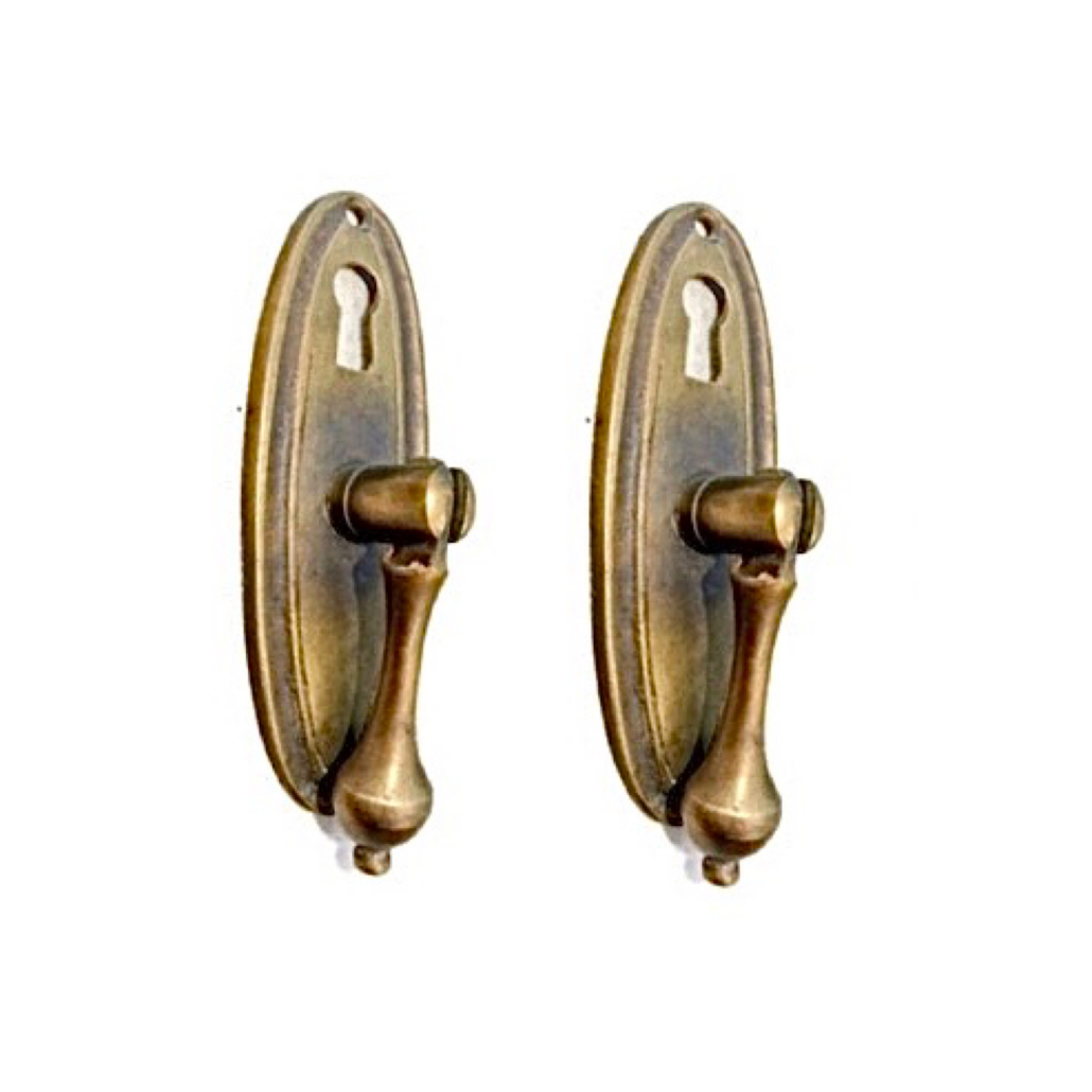 2 heavy antique style DRAWER PULLS Drops KITCHENS doors solid brass antique colour