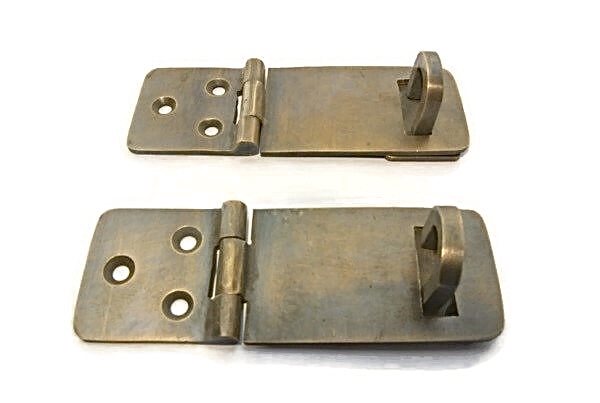 2 small box catch hasp latch aged real brass old style house DOOR heavy rectangle solid brass Antique Vintage style Lock hand made padlock