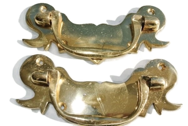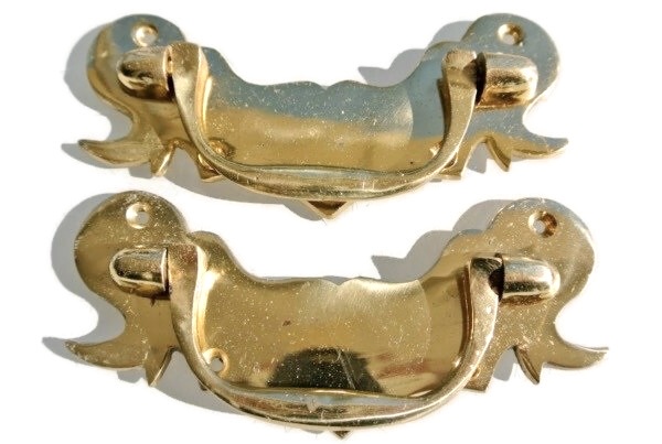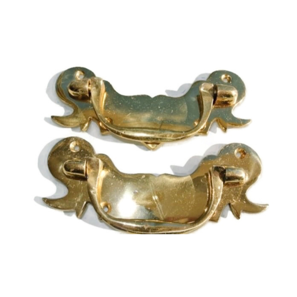 2 heavy antique style DRAWER PULLS BOX handles 4.1/2″ brass