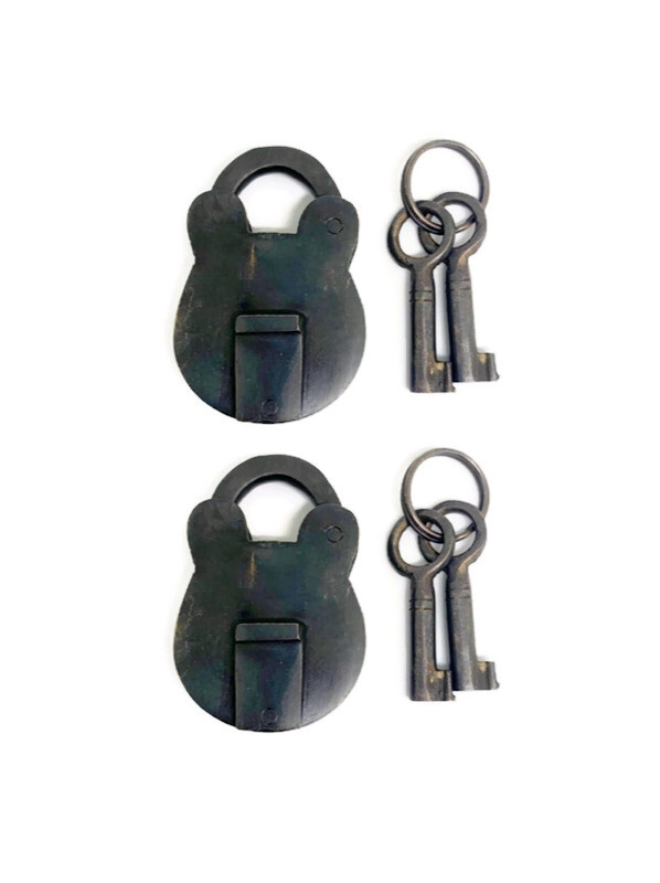 2 small padlock Vintage stye solid brass 2 keys heavy lock bridge 60 mm box furniture Antique Vintage style skeleton Keys Safe Lock