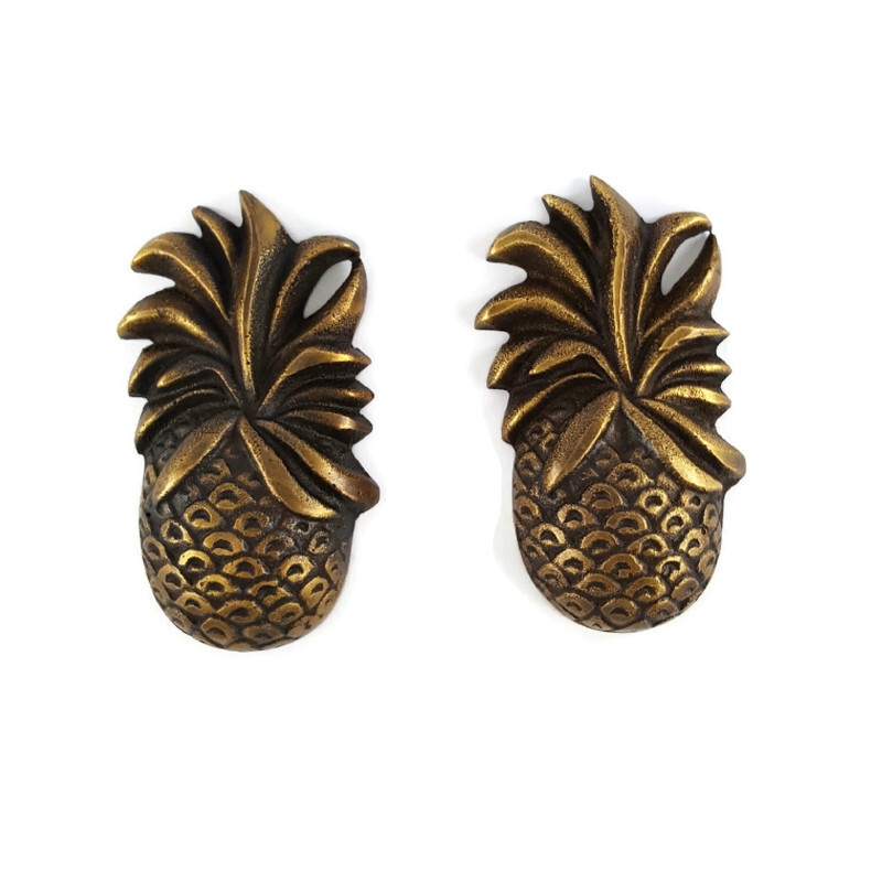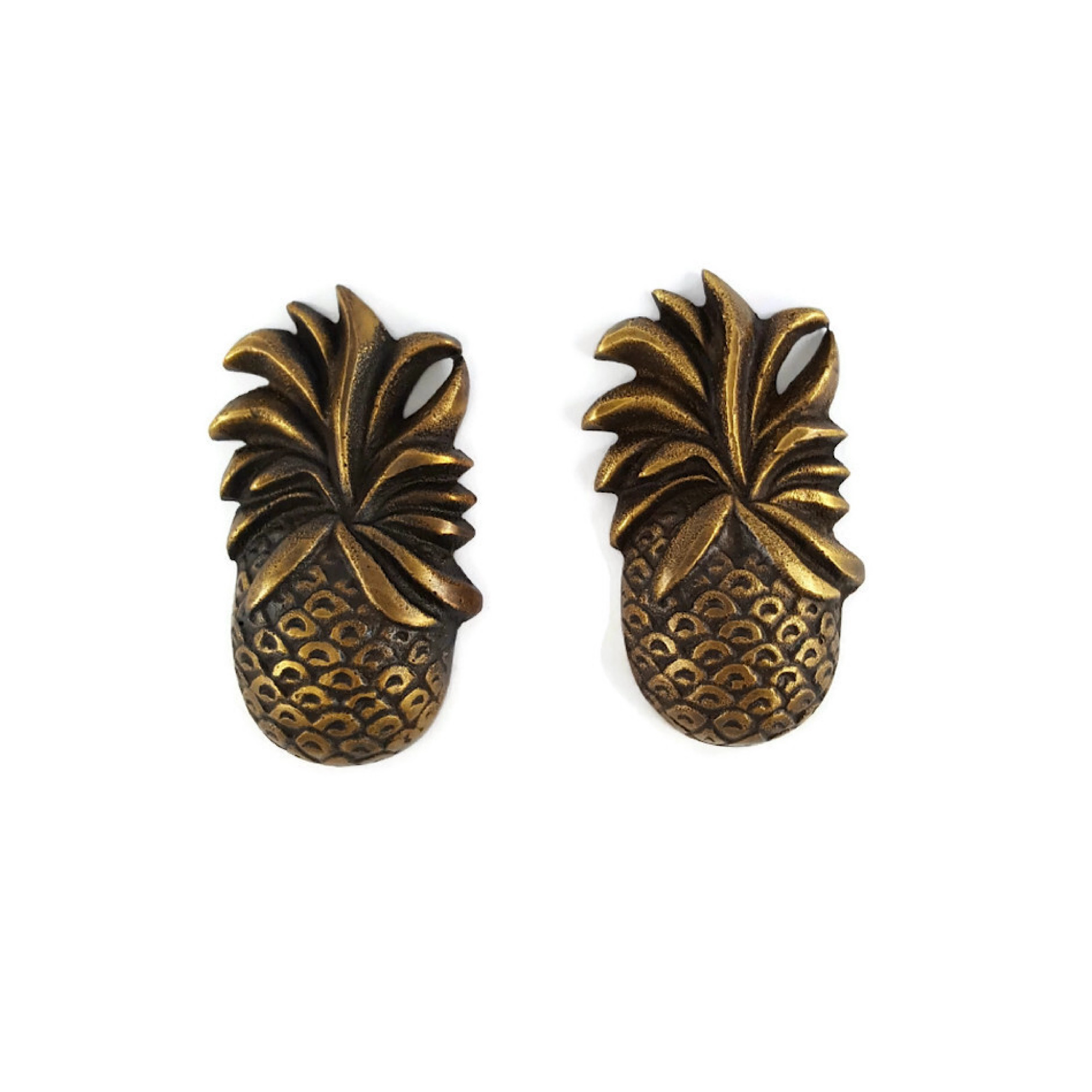 10 PINEAPPLE COAT HOOKS 4″ small solid brass aged antiques vintage old...