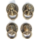 4 small POLISHED SKULL head ring pull Handle cast BRASS day of the dead cabinet...