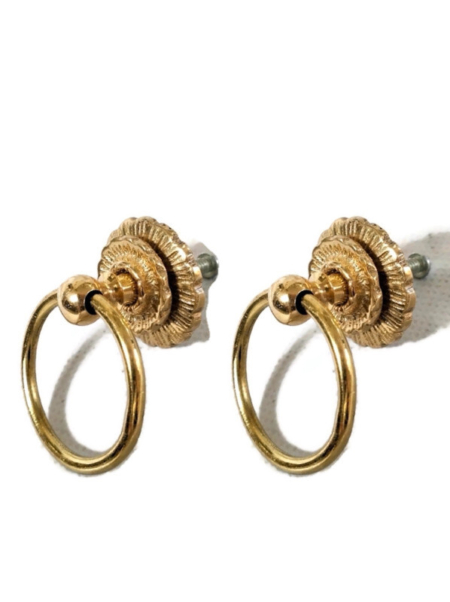 4 medium version 5 cm handle ring pull flower solid 100% brass heavy old vintage...