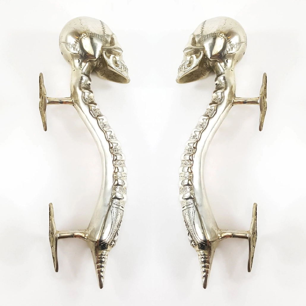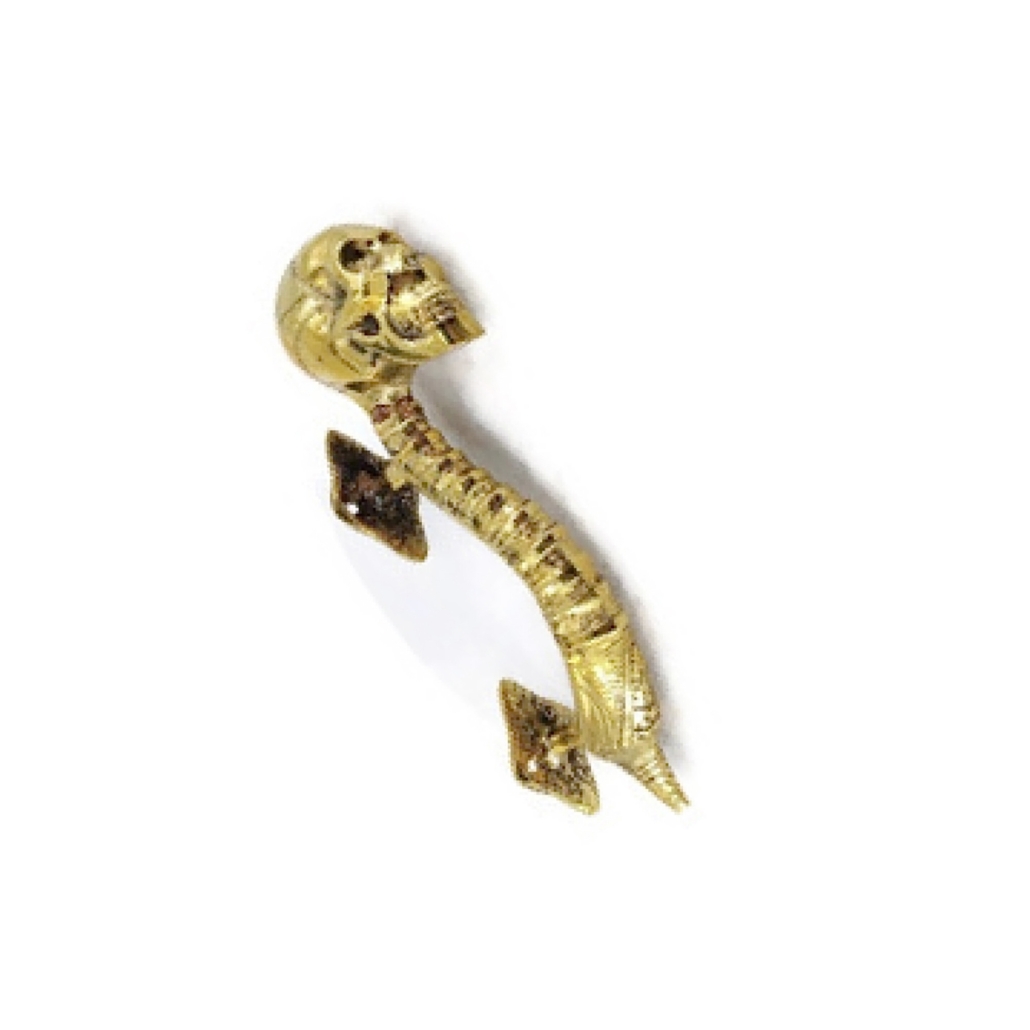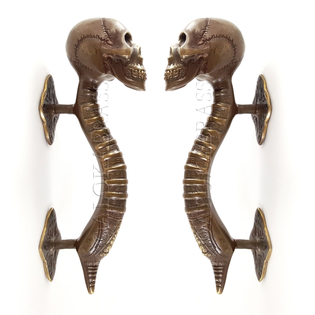 small version SKULL head handle DOOR PULL spine oxidized patina brass old style...