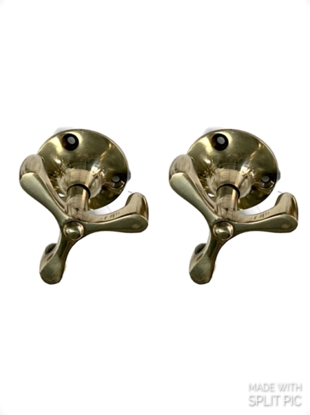 2 small Vintage spinning deco solid BRASS wardrobe HOOKS, kitchen, ceiling hooks, coat bag hooks, cabinet hardware, antique brass