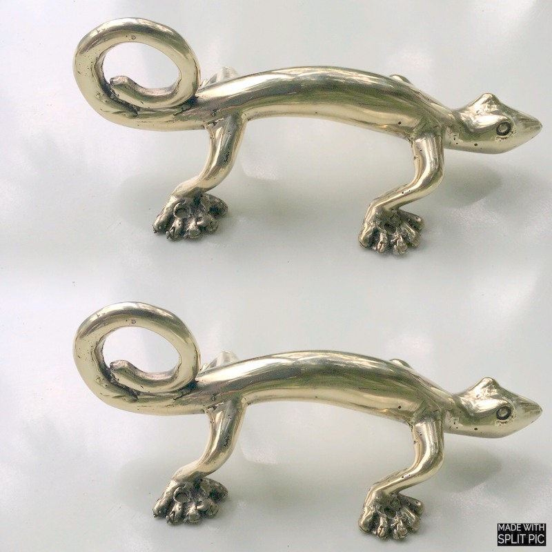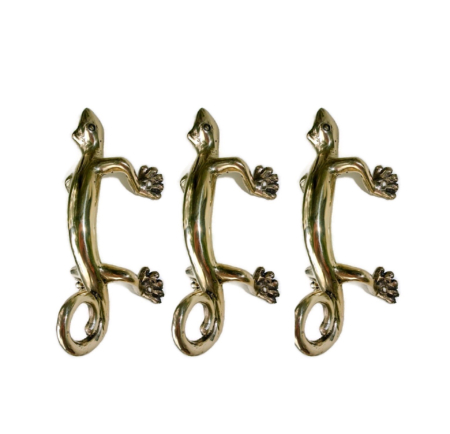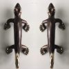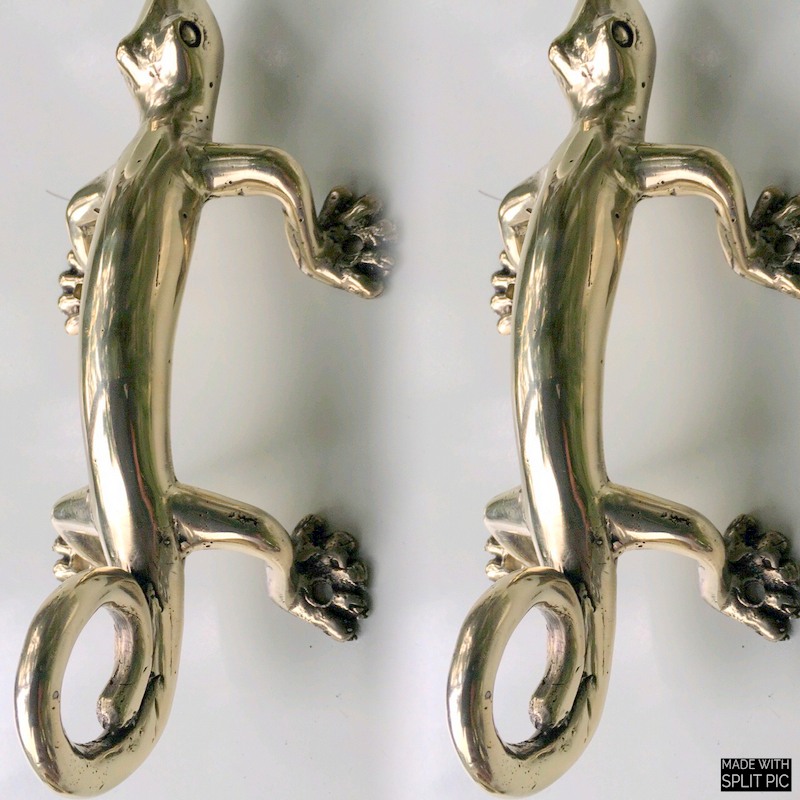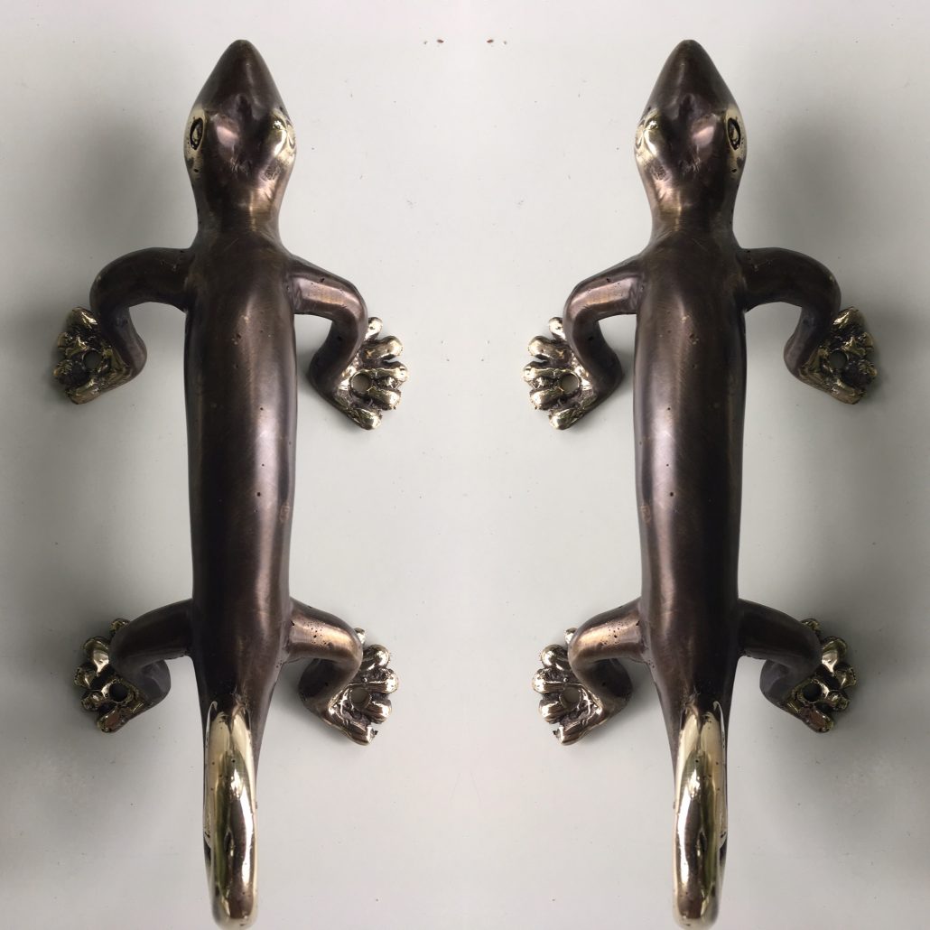 3 small 8.1/2″ inches GECKO DOOR PULLS antique oxidized green patina 21cm aged solid hollow pure brass vintage old style house handle gate grab
