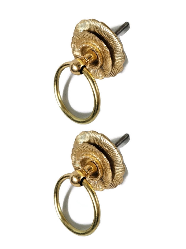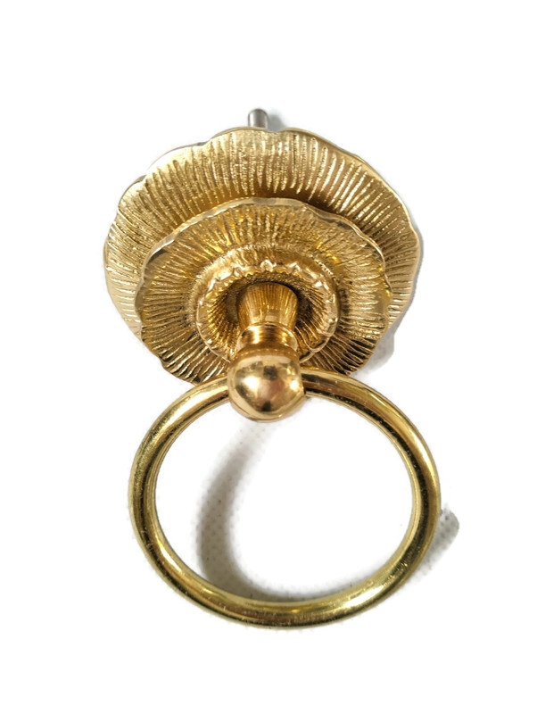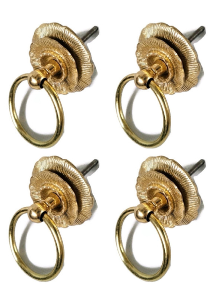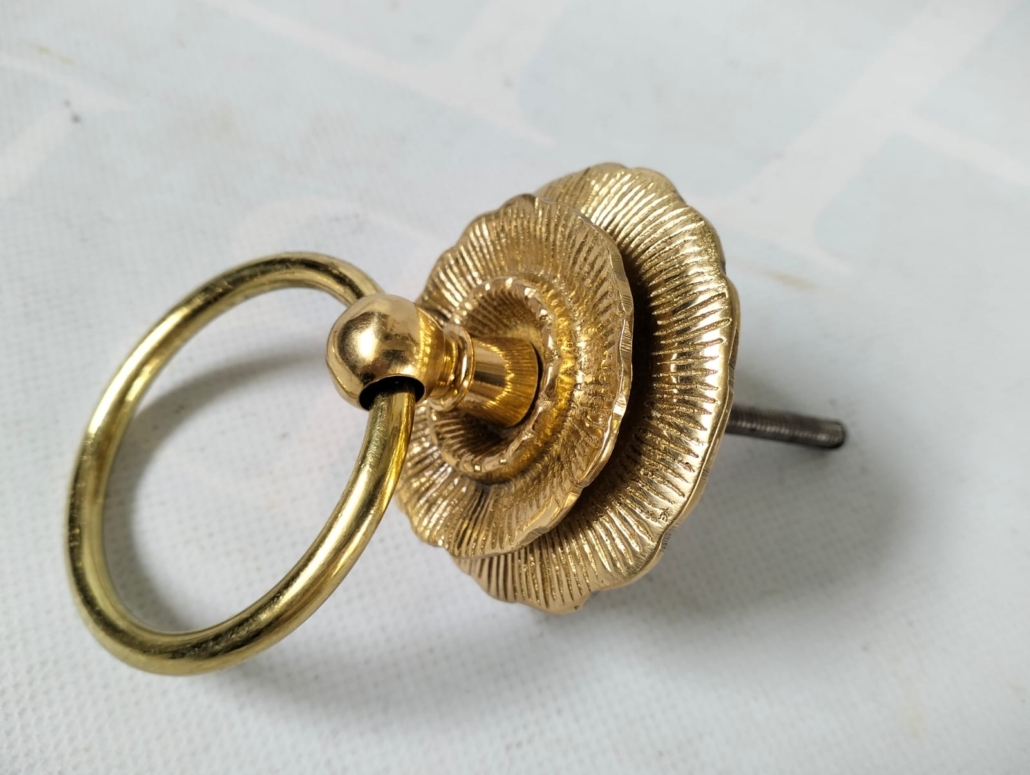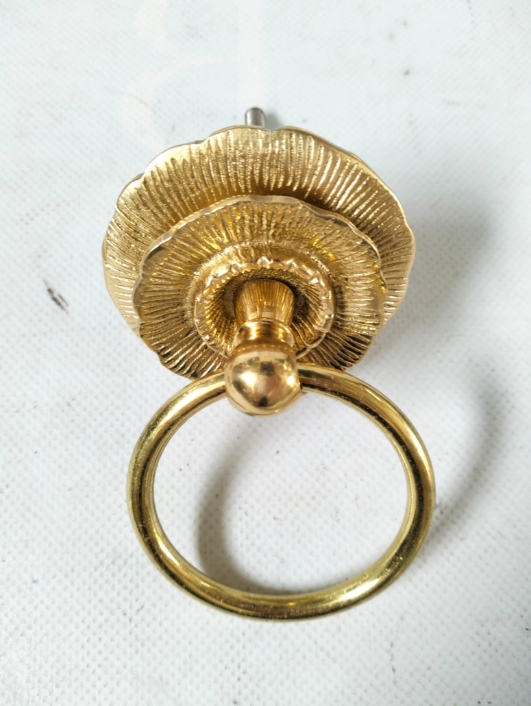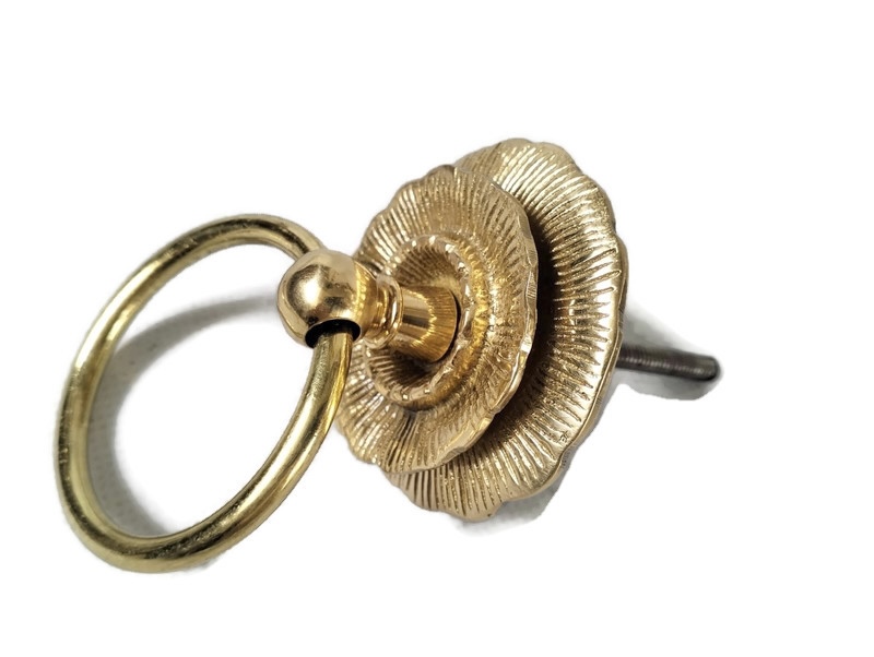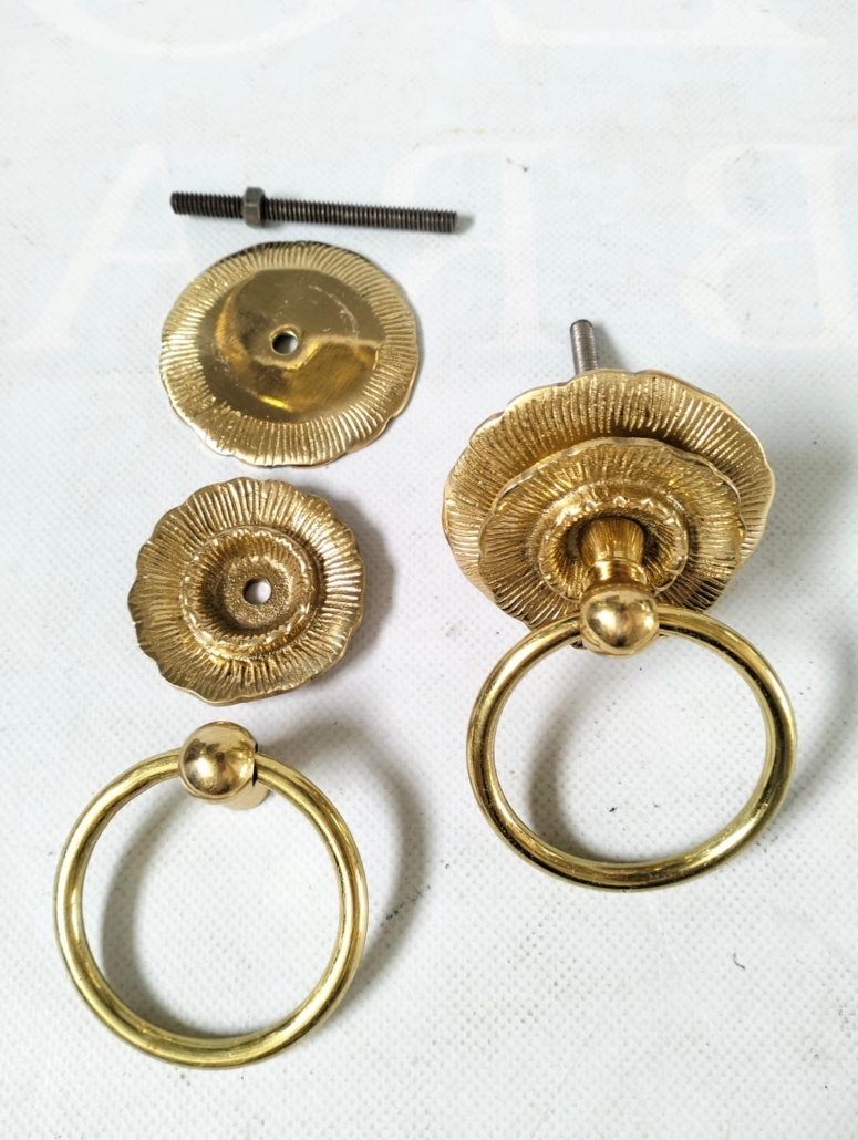 4 Large version 7 cm handle ring pull flower solid 100% brass heavy old vintage asian style DOOR 2.3/4″ bronze patina cast heavy solid brass