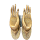 Hand made from solid brass then hand polished. It is hollow inside light weight