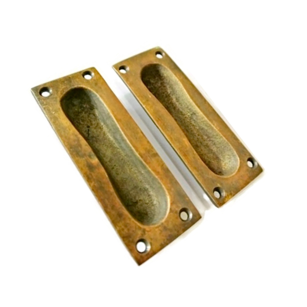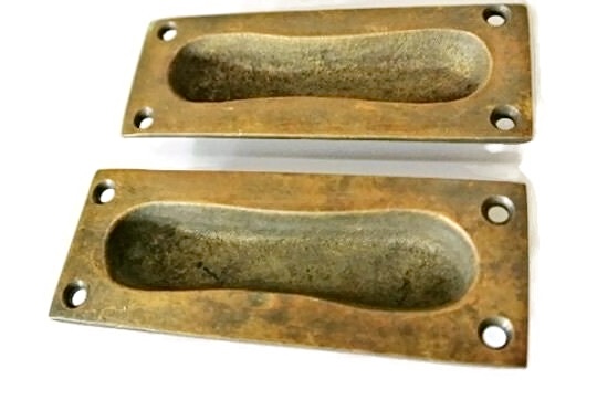 4 pcs Vintage Solid Brass Baldwin FLUSH Pull Antique Sliding Door Cabinet Brass Knob Drawer Pulls