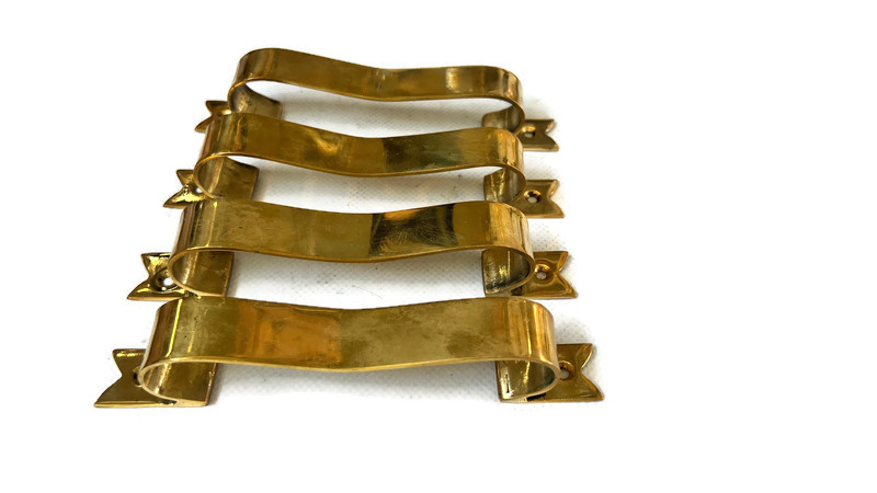 4 Ribbon Style PULL 6 inches Brass Handles Polished Brass Finish