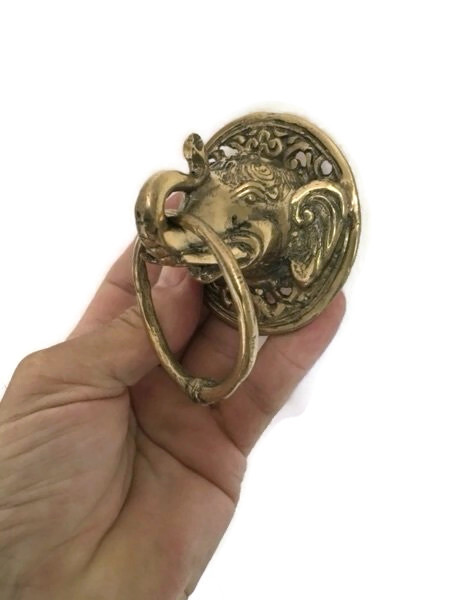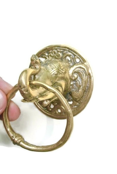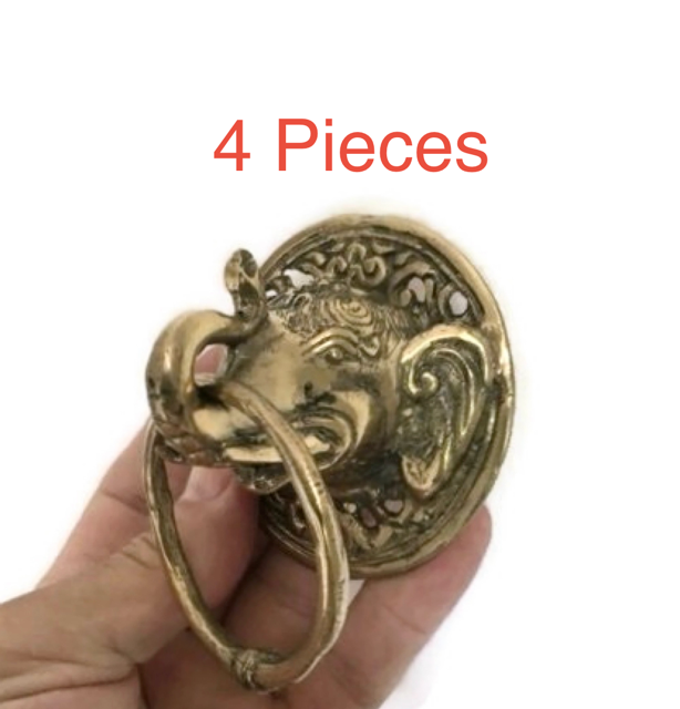 4 small 3″ Cat head Door handle SOLID brass old style polished brass ring...