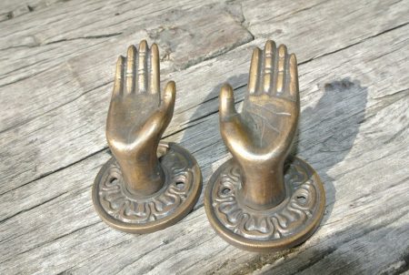 4 tiny small 4.5 cm cast Pull handle hands solid brass door aged old style knob...