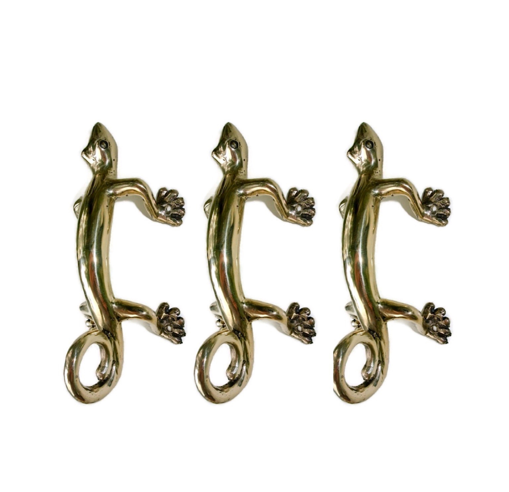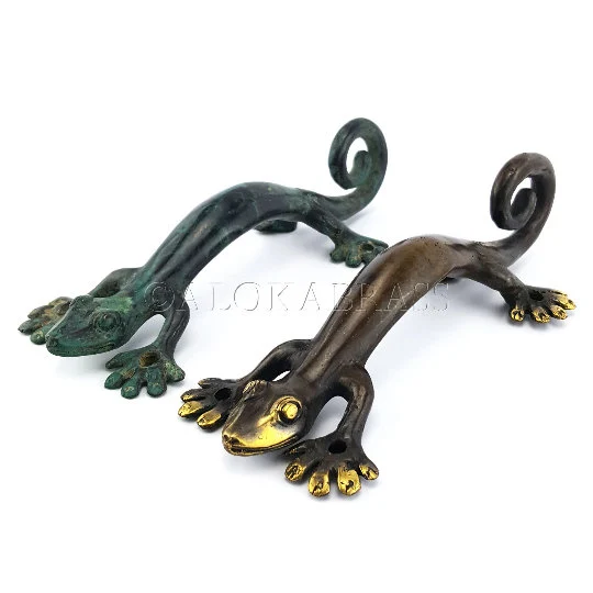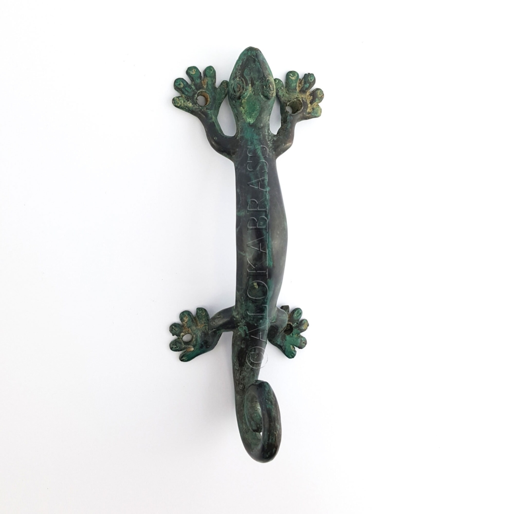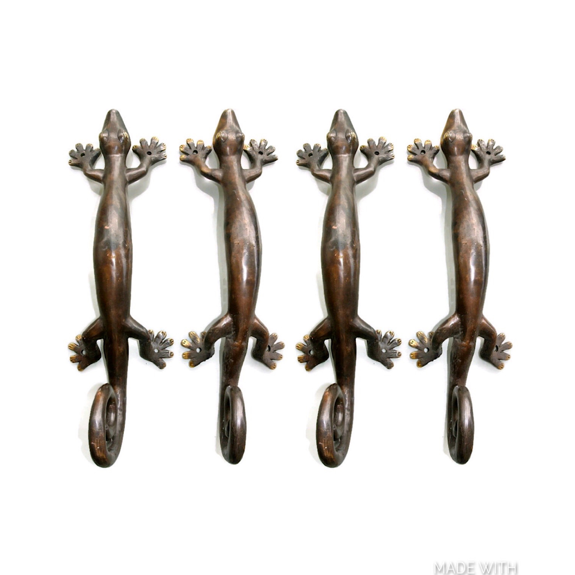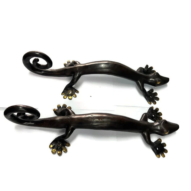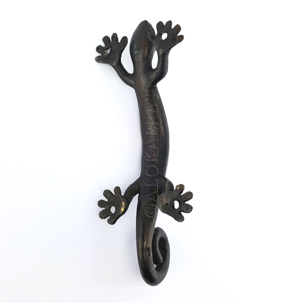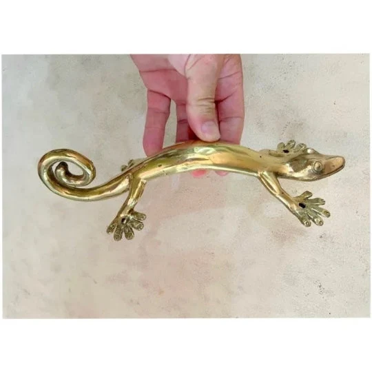 4 small 8.1/2″ inches GECKO DOOR PULLS 21cm aged solid hollow pure brass vintage old style house handle gate grab