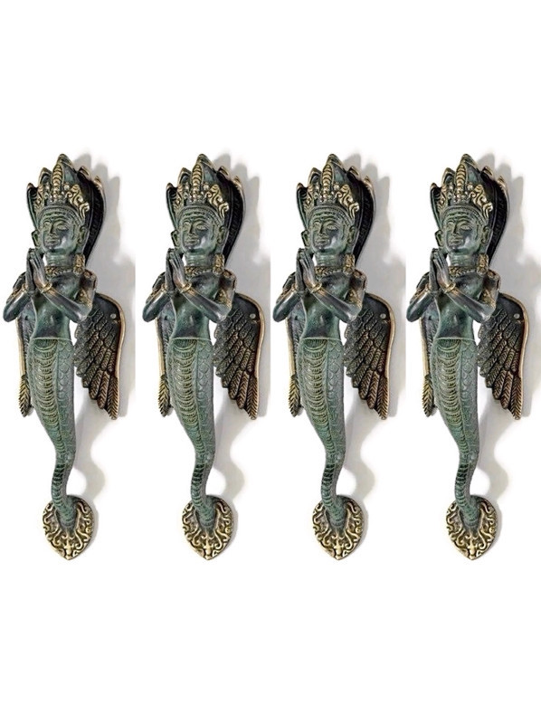 4 stunning praying angel wings Dewi 32 cm polished solid hollow heavy brass door antique style old style house PULL handle 12″ wings