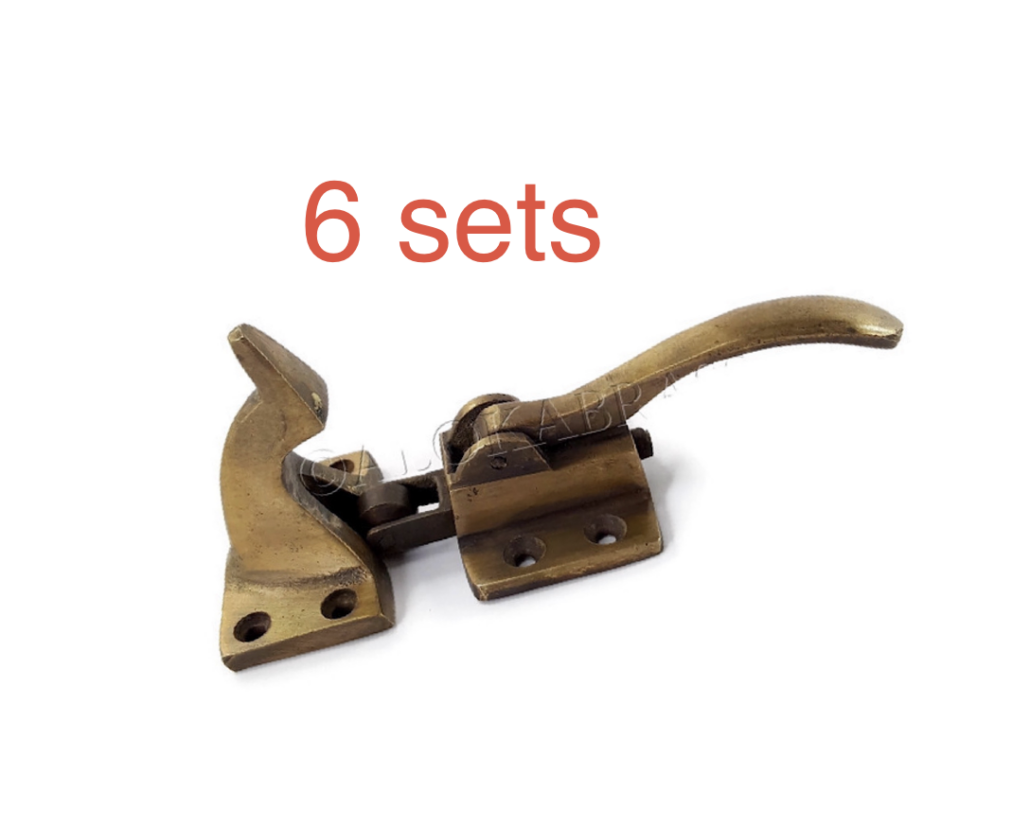 6 complete sets 1/2” inch offset version rare ICE BOX CATCH solid BRASS lever aged antique deco style solid pure brass heavy offset 4″ left & right vintage old aged style hand made cast