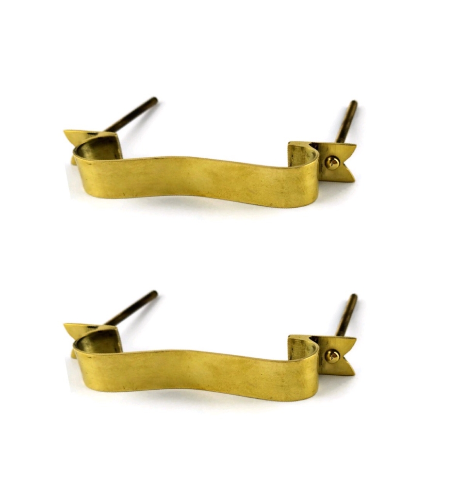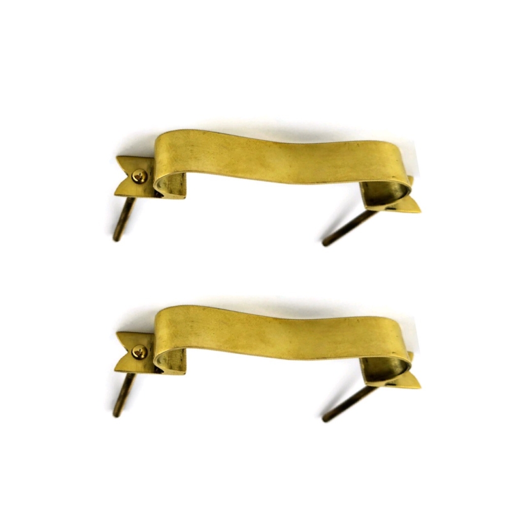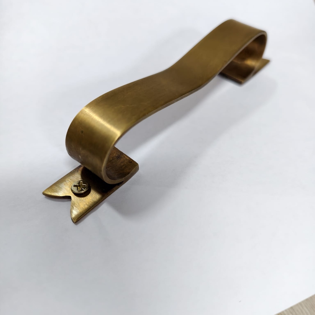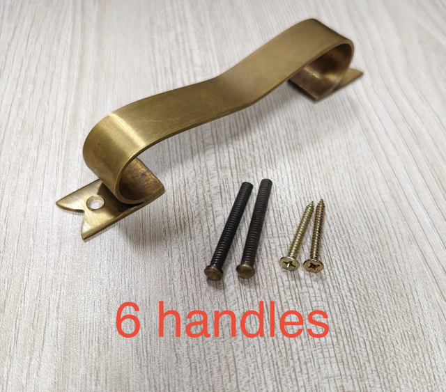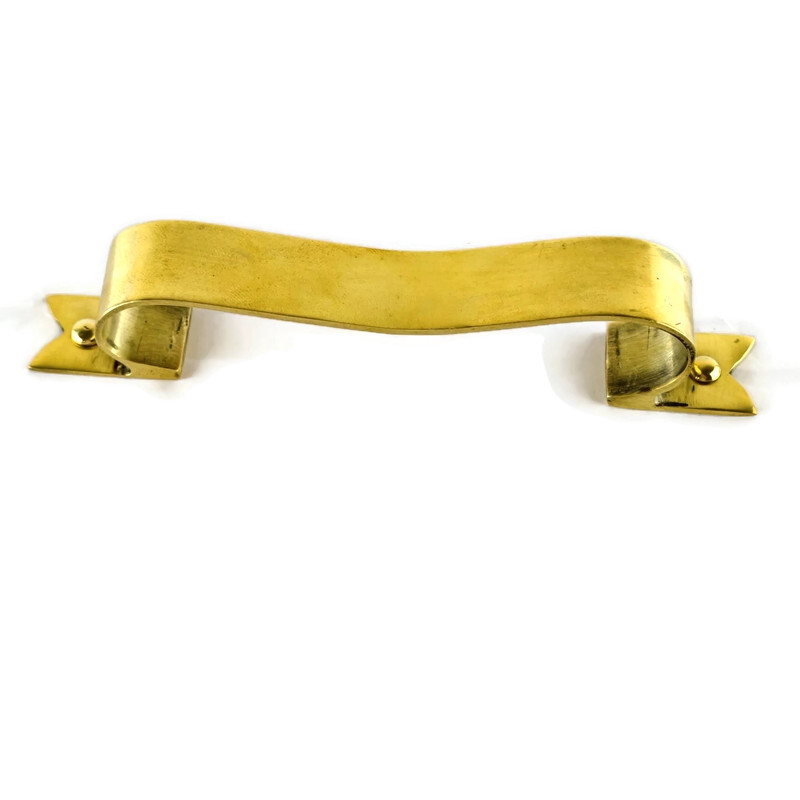 6 handles 6 pieces Ribbon Style PULL 6 ” inches Brass Handles Polished Brass Finish