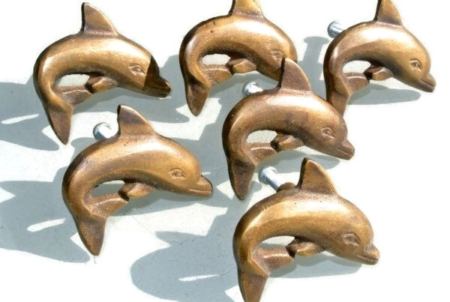 6 small aged 5 cm old style DOLPHIN Cabinet Door solid pure Brass knob handle Drawer Pull 2″ hook Bronze patina
