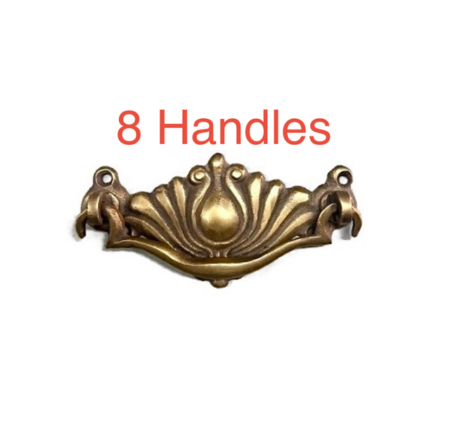 3.3/4″inches wide 8 Solid Brass handles Old vintage aged style screws included Size Approx 95 mm x 47mm