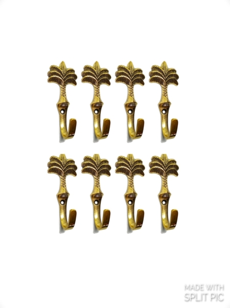 8 small 4″ inch palm tree COAT HOOKS 10 cm small solid brass antiques vintage old style 100mm hook many finishes