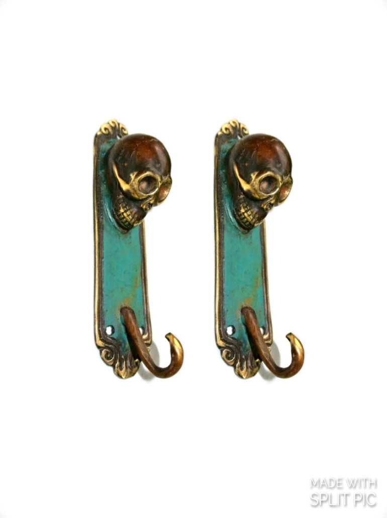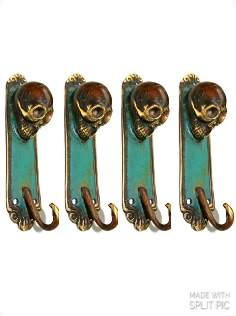 2 brass 7″ inch large version Stunning Skull Brass Hook Vintage Old Style...