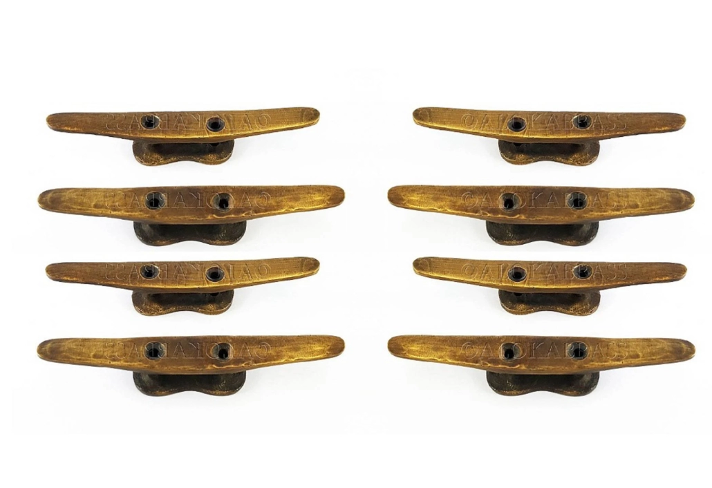 8 solid brass Cleat Tie Down large version Hand Cast 14cm Rope Heavy Hooks Jetty Boat Strong Hooks 5.1/2″ jetty pier cleats suk
