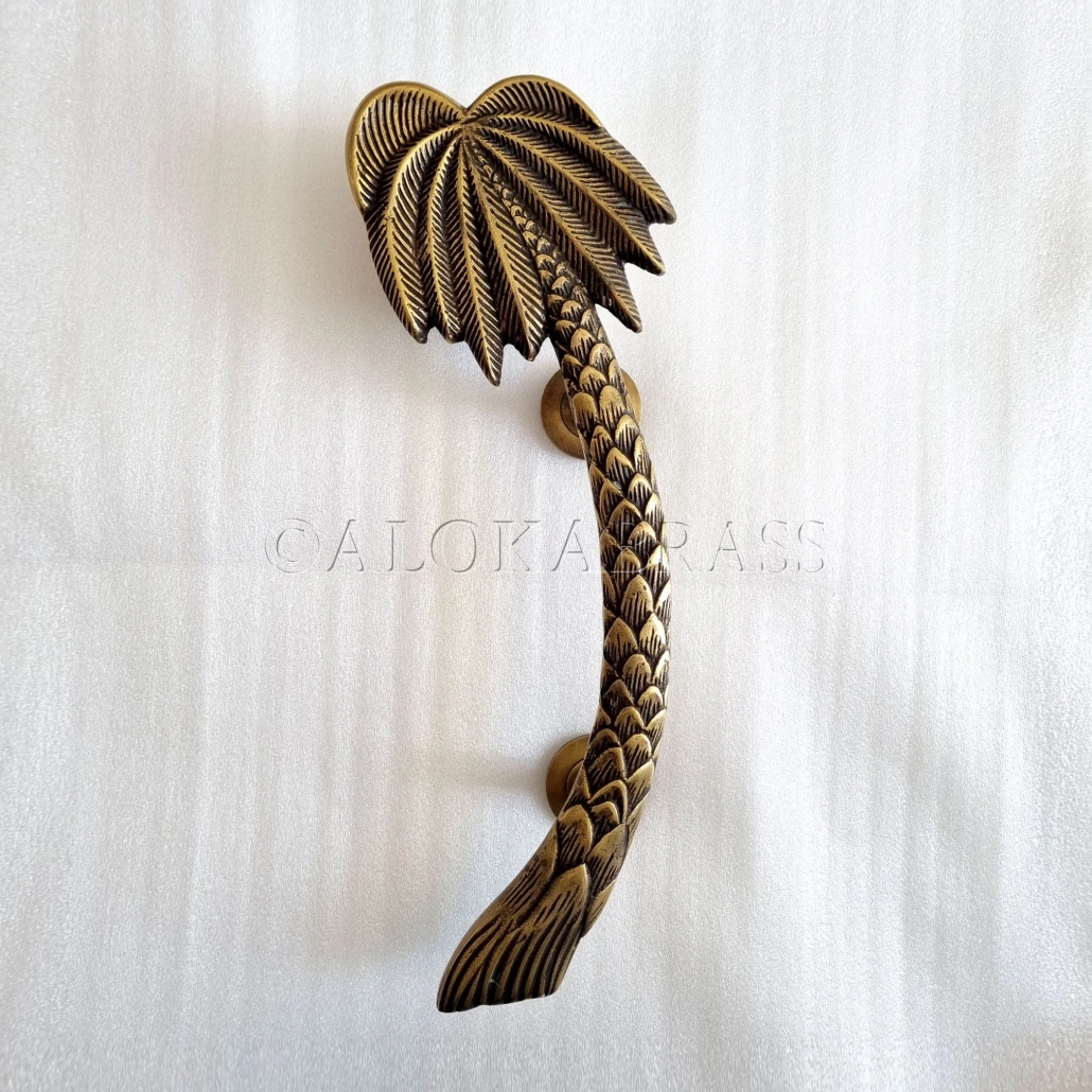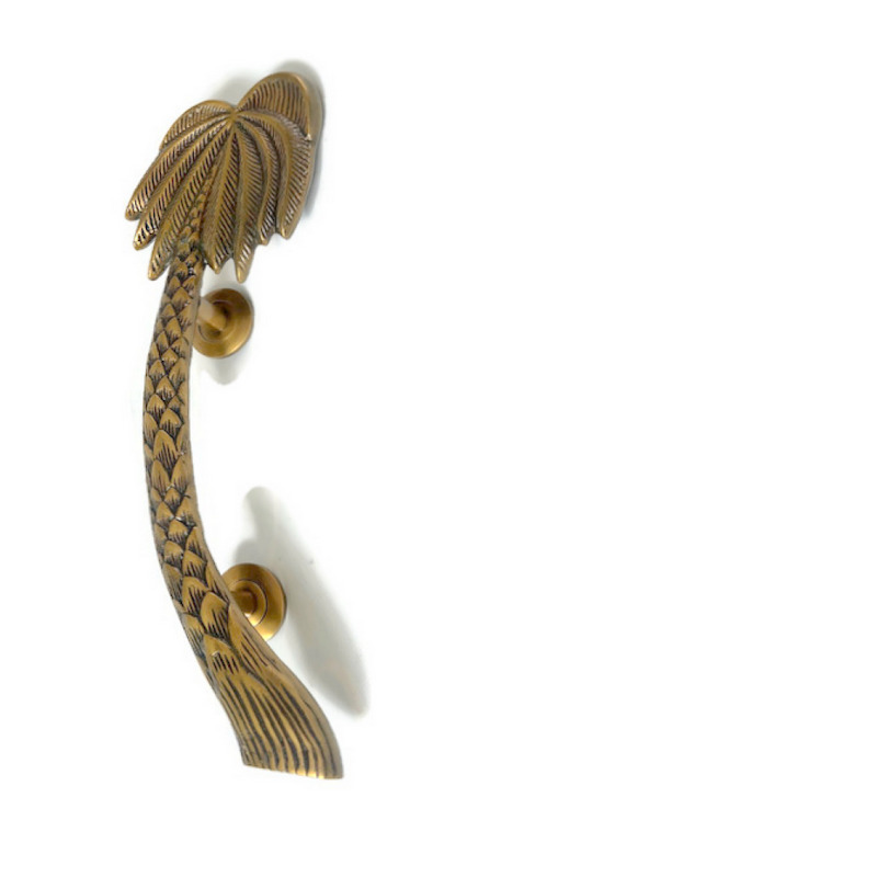 16″ inch long Palm tree shape door pull heavy cast solid brass handles