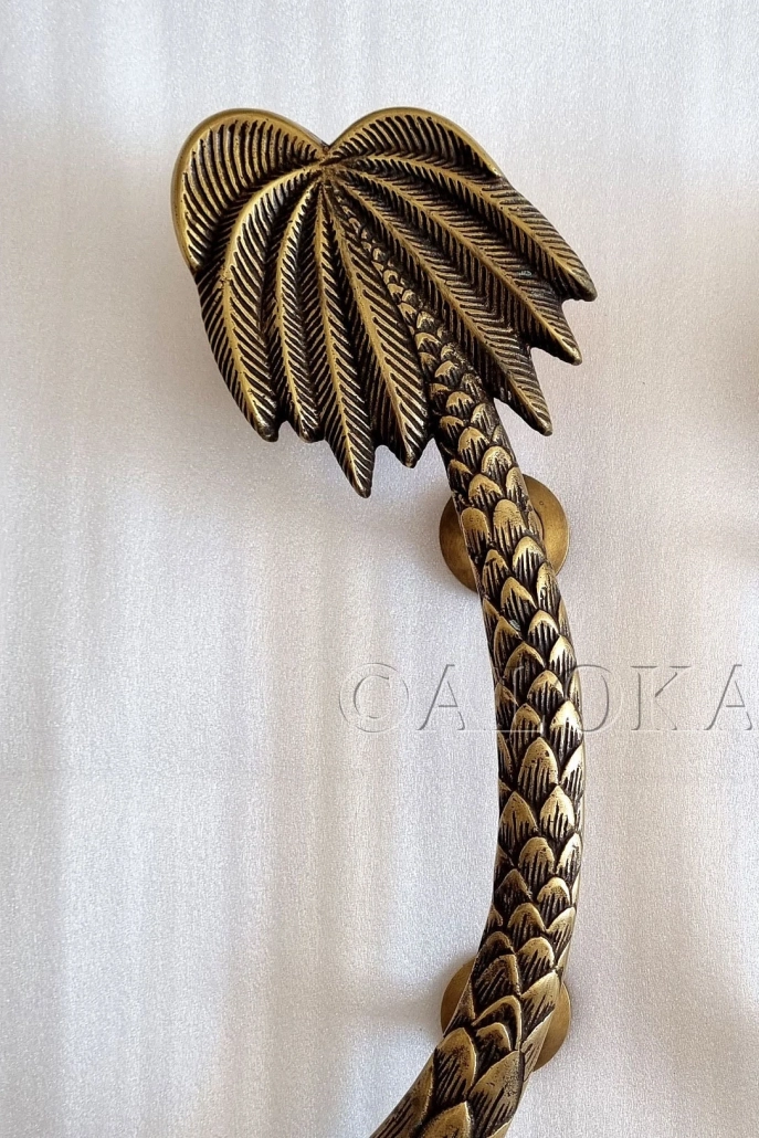 door handle 16″ inch long large version 40cm solid brass Stunning PALM Tree Leaves heavy brass trunk door pull handle rustic Door grab Heavy