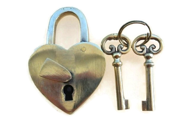 Link to: “small hasp & staple 4.1/2” latch vintage style house BOX antiques box small heart shape padlock catch DOOR heart padlock and key Key heavy