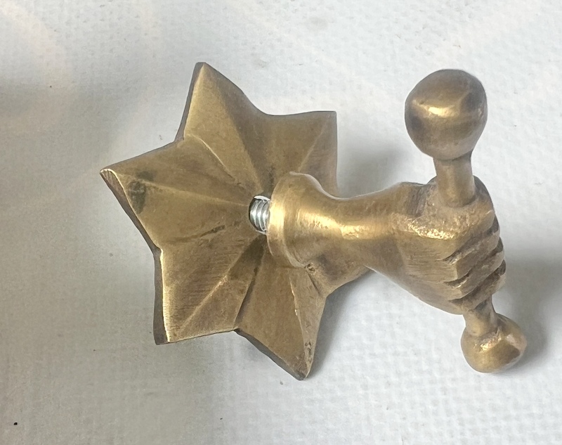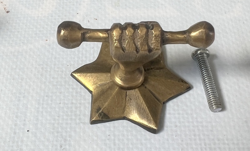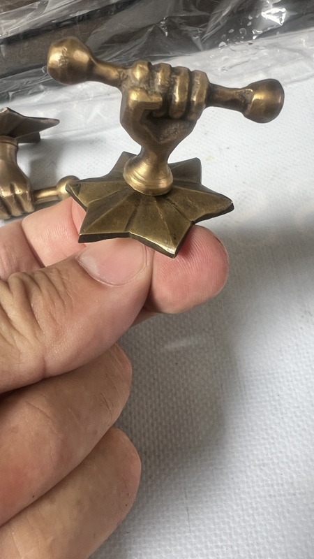 6.5 cm long old looking hand fist knobs.