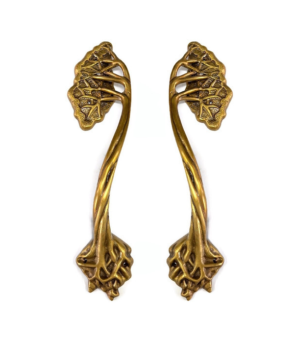 pair OCTOPUS Solid 100% Brass hollow hand DARK antique green Door PULL HANDLE...