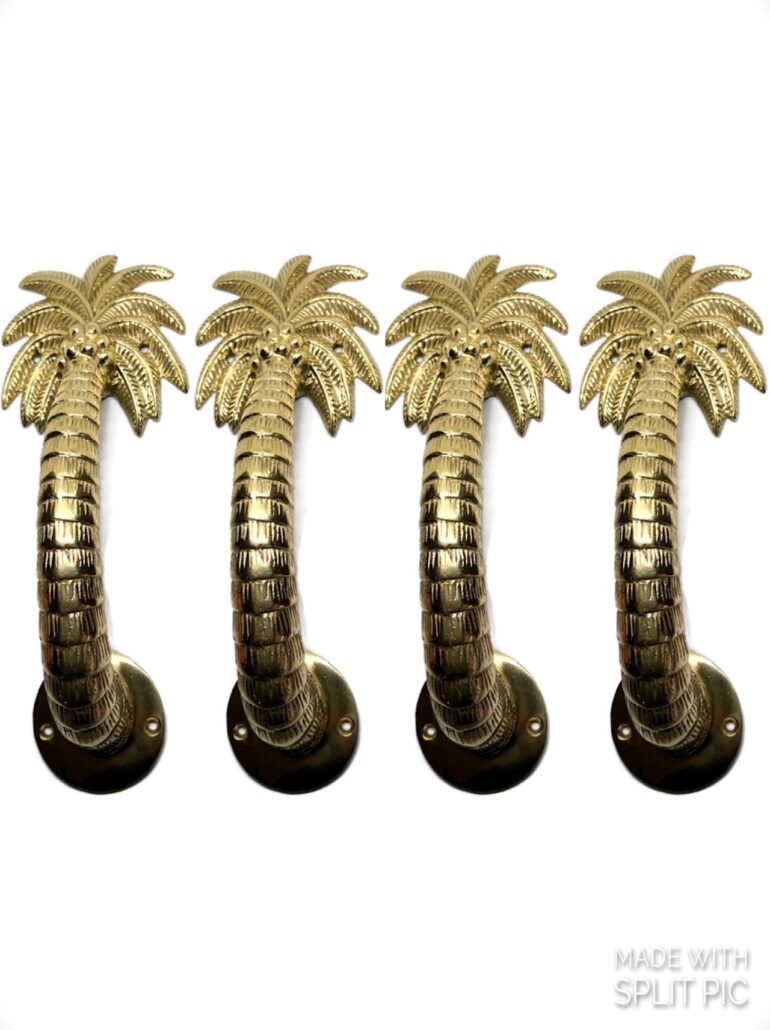 4 heavy cast 11″ Polished Medium version Palm tree Door pull handle solid aged brass 28cm