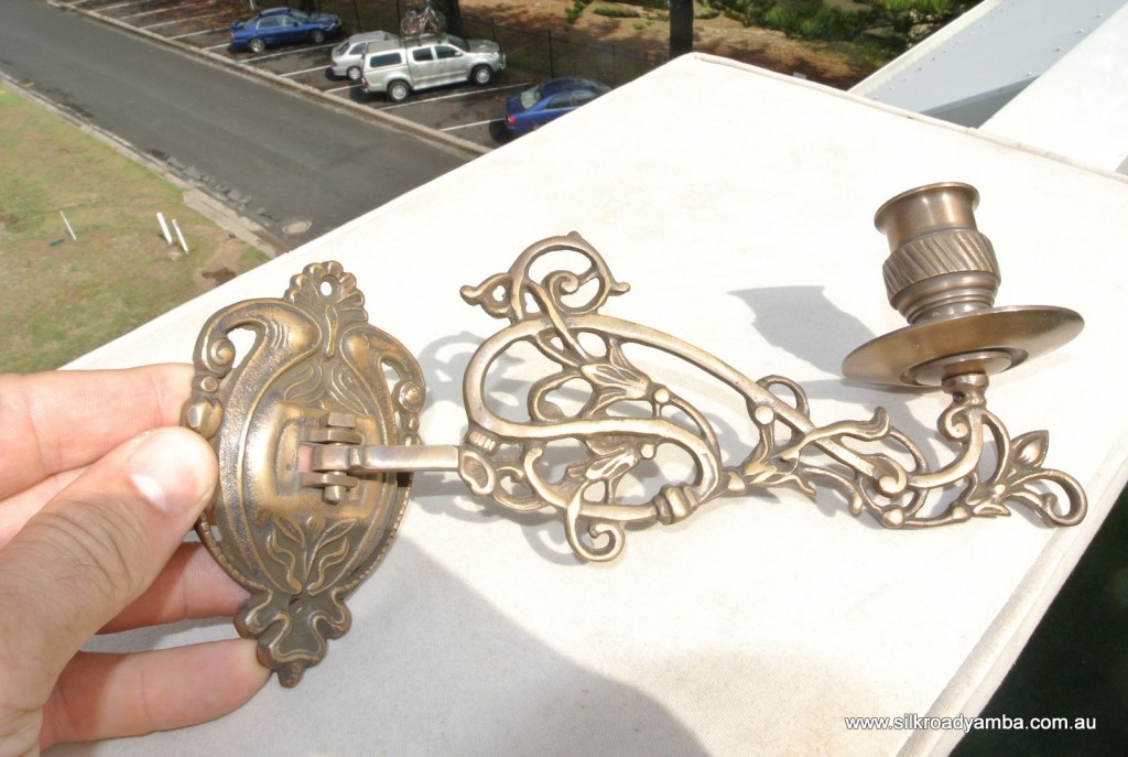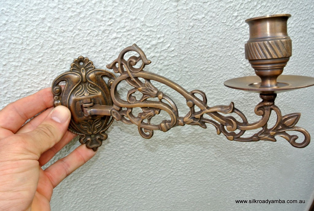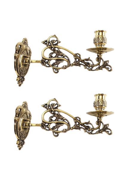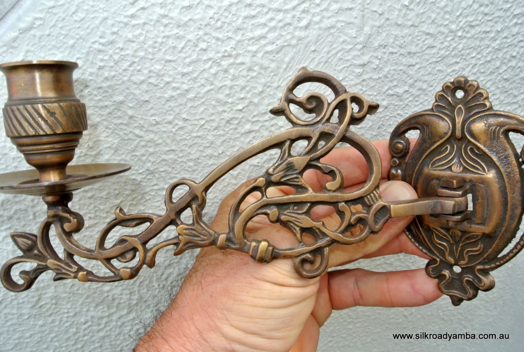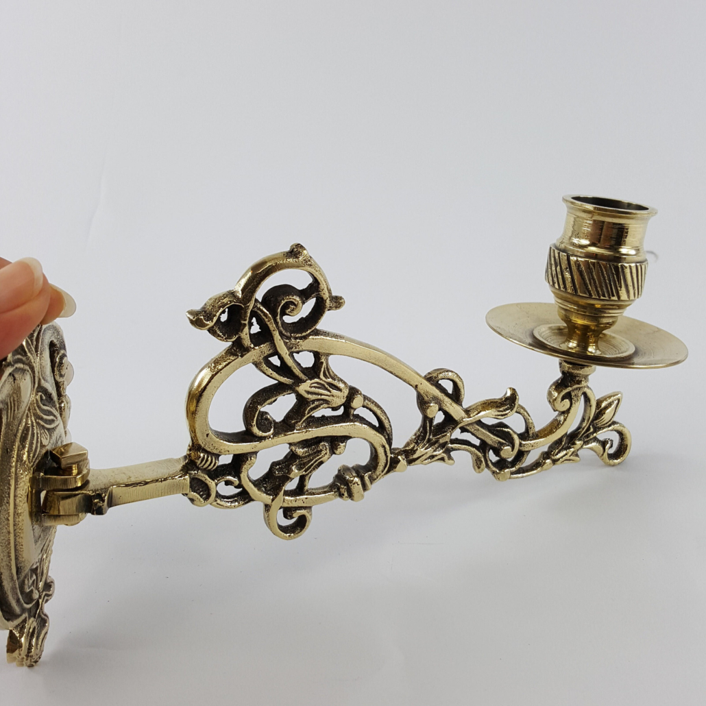 PAIR PIANO SCONCE solid heavy brass 8 ” rotate candle holder aged heavy brass B