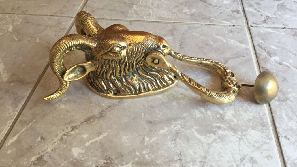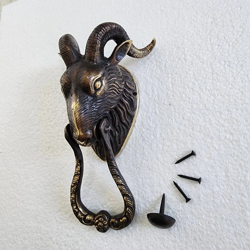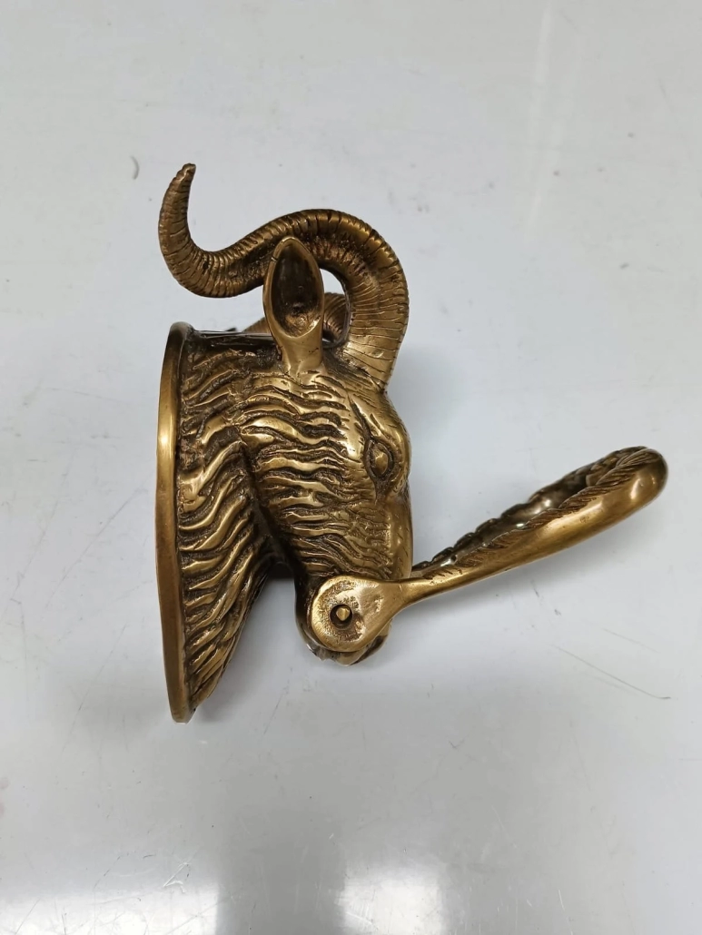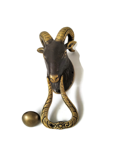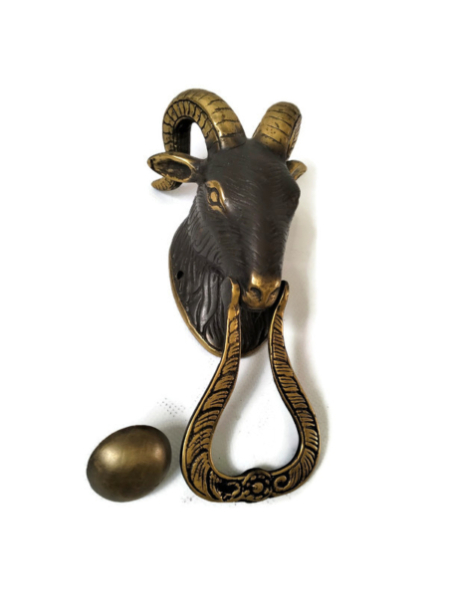 Small Version 8″ inch long GOAT head heavy front Door Knocker SOLID BRASS old brass 20 cm