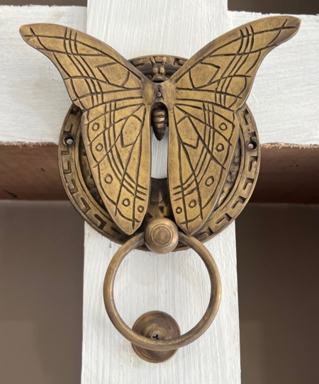 large 8″ inch long Solid Brass heavy BUTTERFLY Door Knocker 20cm high 15 cm wide bolt pull
