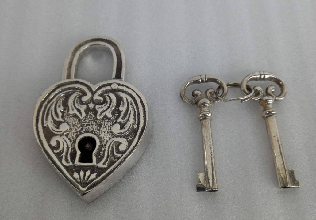 Solid brass Marriage Vintage Style Heart Love Shape Padlock 2 keys Wedding Locks Works Solid Brass heavy 4″ inch engraved
