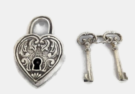 Vintage Style Heart Love Shape Padlock with 2 keys lock works.