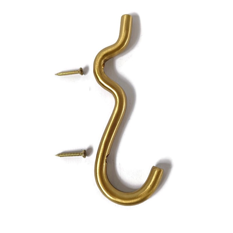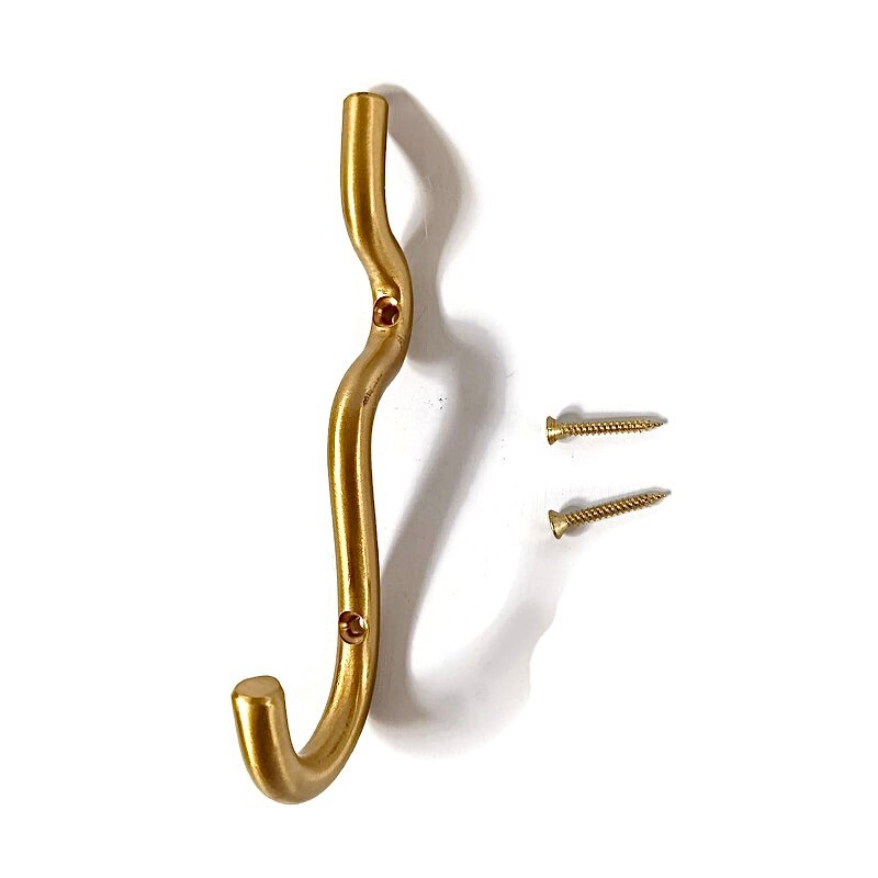 Cast in silicon molds, unique shape and heavy detailed brass casting. Wall mount coat hat hook. Size see photos Screws included