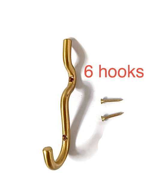 6 Solid heavy brass 6 pieces 6″ inch long face fixing wall hooks