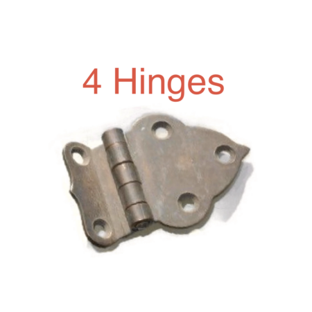 4 small offset fancy scallop solid thin solid Brass DOOR small hinges lead light meat safe aged patina finish heavy screws included